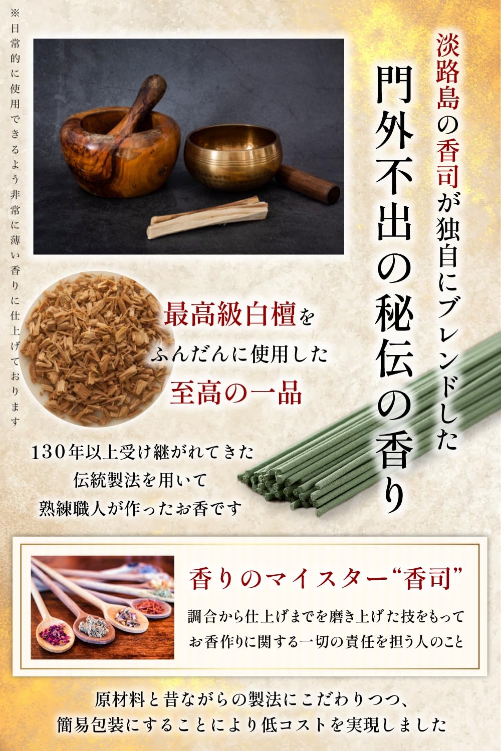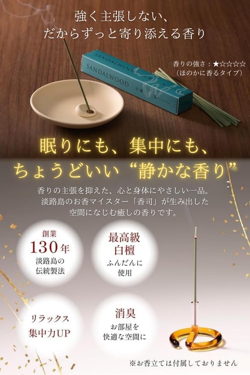 【 最高級白檀 × 淡路島の伝統製法 】 お香 線香 白檀 サンダルウッド 香立なし 約60本