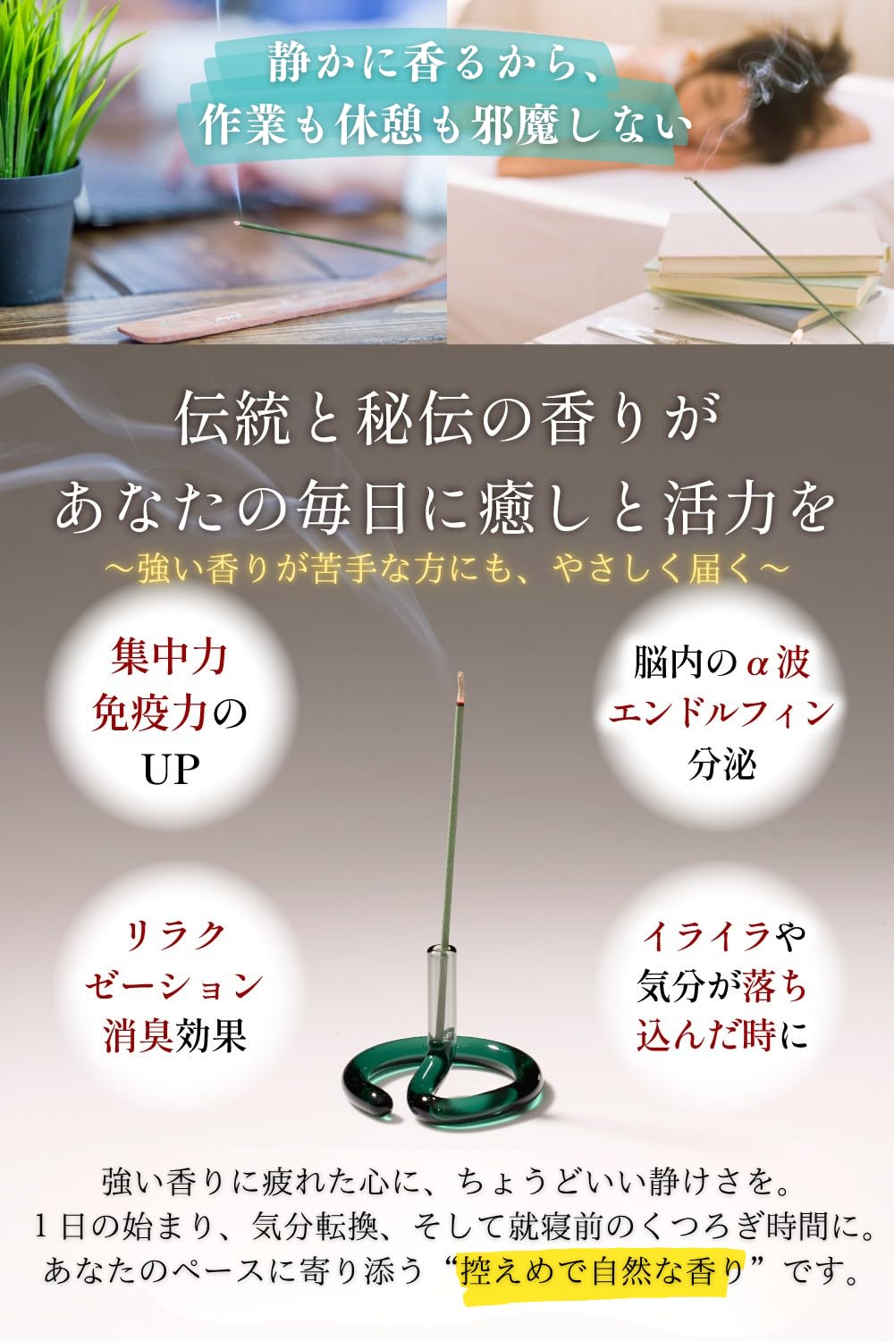 【あなたの毎日に癒しと活力を】集中力UP、免疫力UP、脳内のα波・エンドルフィンの分泌、リラクゼーション、消臭効果のあるnumuonのお香。健やかに過ごしたい1日の始まりに、休憩中のリラックスや午後の気分転換に、そして就寝前のくつろぎのひと時に。忙しいあなたに寄り添うやさしい香りです。