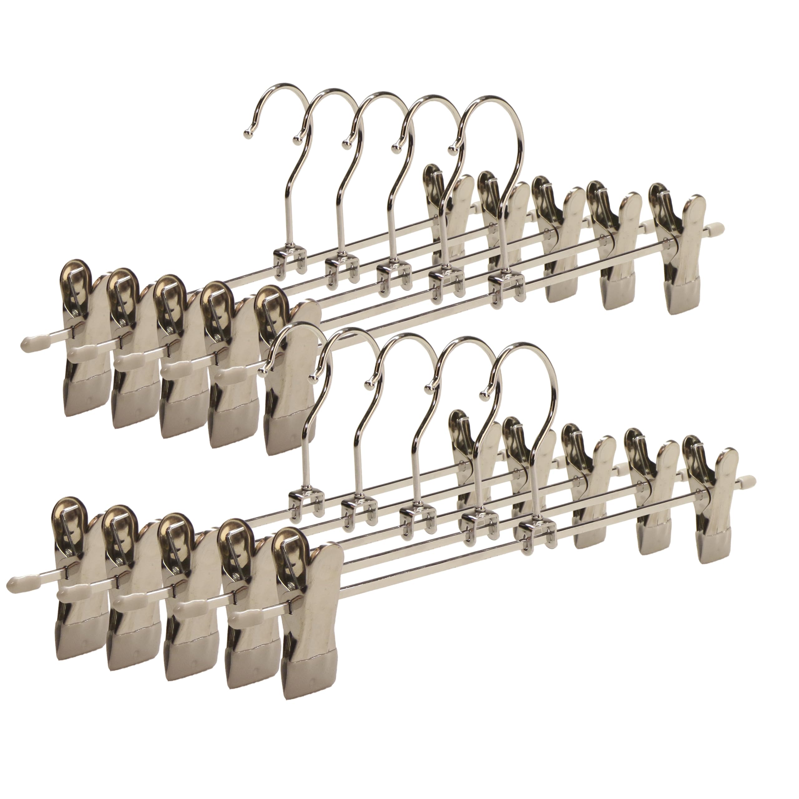 ズボンハンガー スカート用 滑らないクリップ式 幅調整可能(最大30cm) 360°回転フック 省スペース 洗濯物干し パンツ/スカート/マフラー対応【10本セット, シルバー】