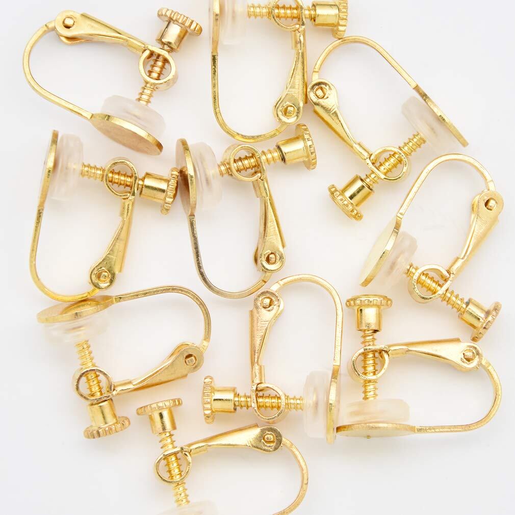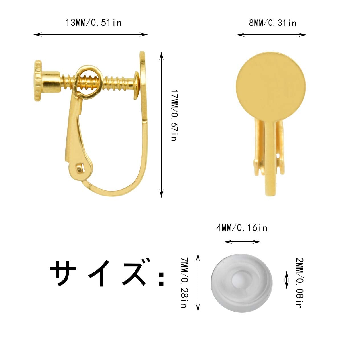【特価在庫】イヤリングパーツ MUNCVY DIY ネジバネ式 皿付き カンなし 8mm 5ペア10個 シリコンカバー付き ゴールド ネジ調整クリップ 貼り付けタイプノンホール ピアス ハンドメイド 基礎金具 材料 素材 | GIGATERA