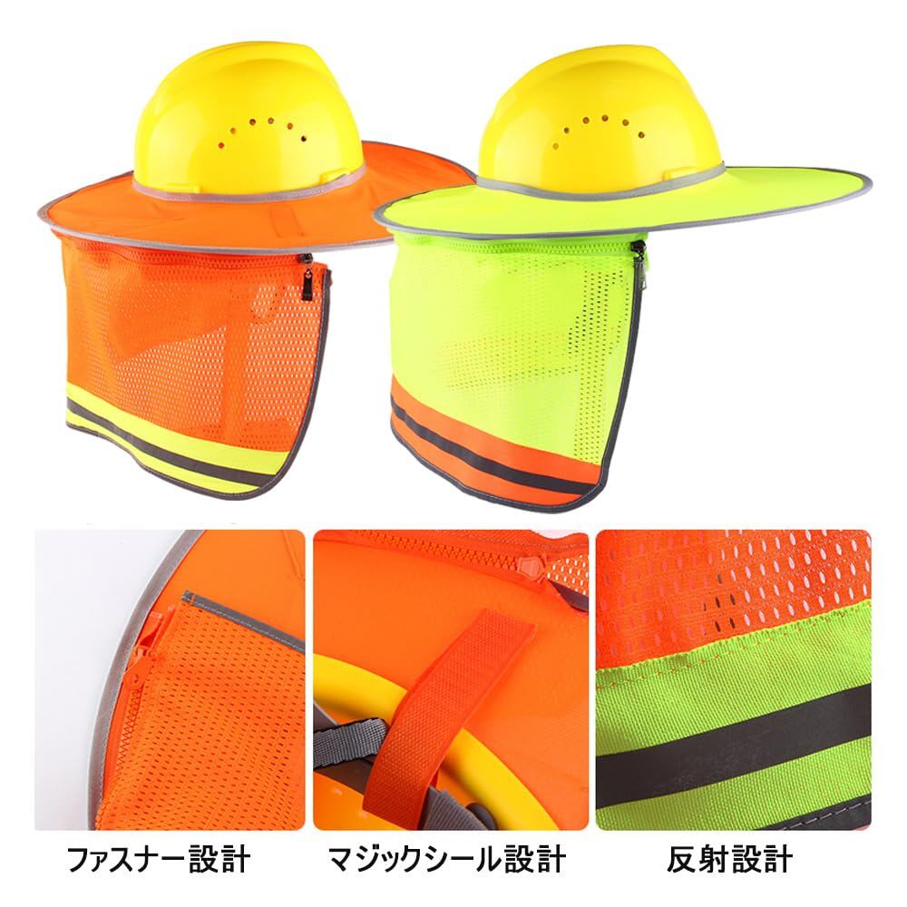 ヘルメット取付用日よけ サンシェード 日よけ 熱中症対策 サンシェード ヘルメット ヘルメットバイザー 日除け 建築現場 UVプロテクション メッシュ ブレス フルブリムメッシュサンシェード 日差し除け ヘルメットなし(オレンジカラー)