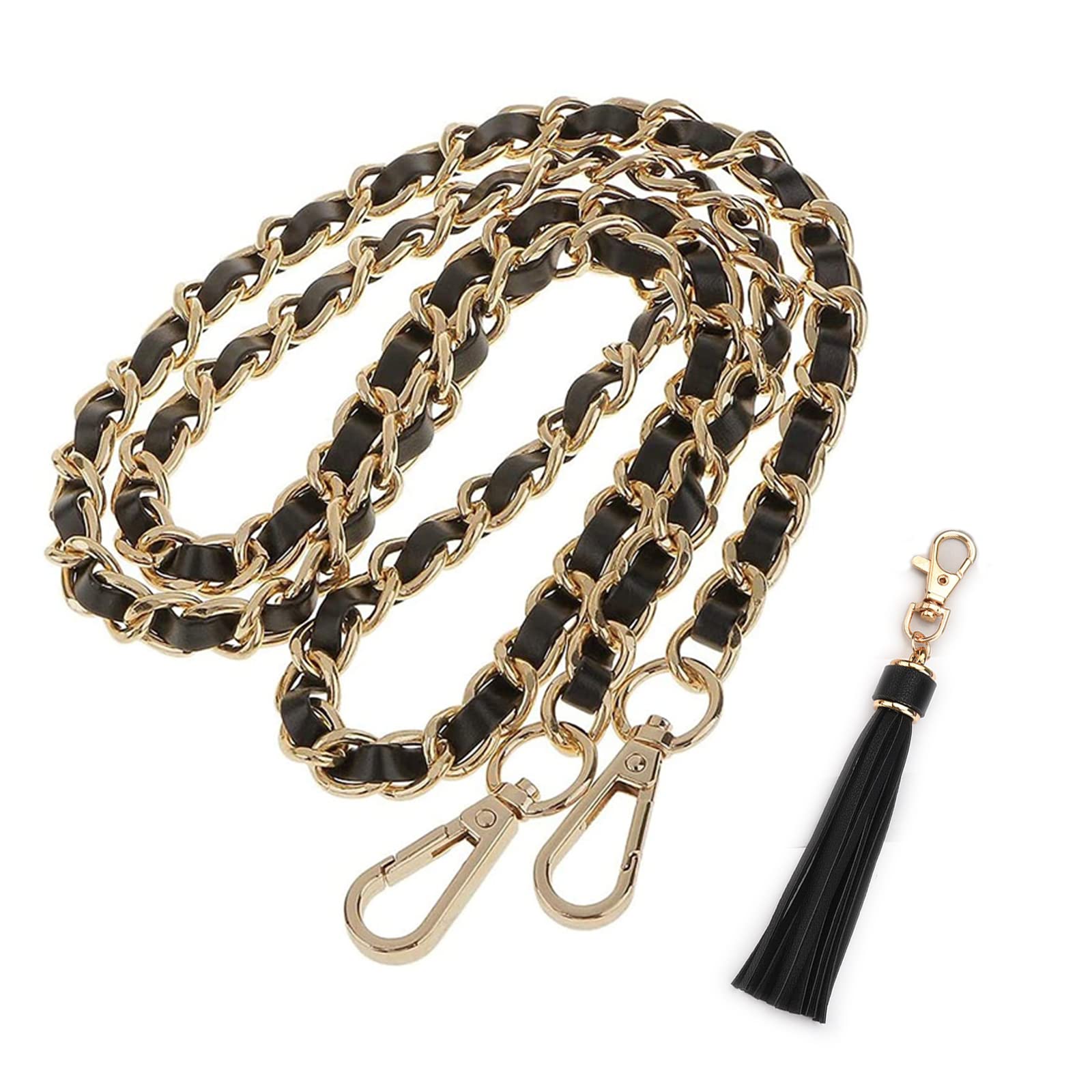 [DFsucces] チェーン ストラップ ショルダー ハンドバッグ 付け替え 交換用 アクセサリーパーツ 120cm長さ (1本入り-黑ゴールド)