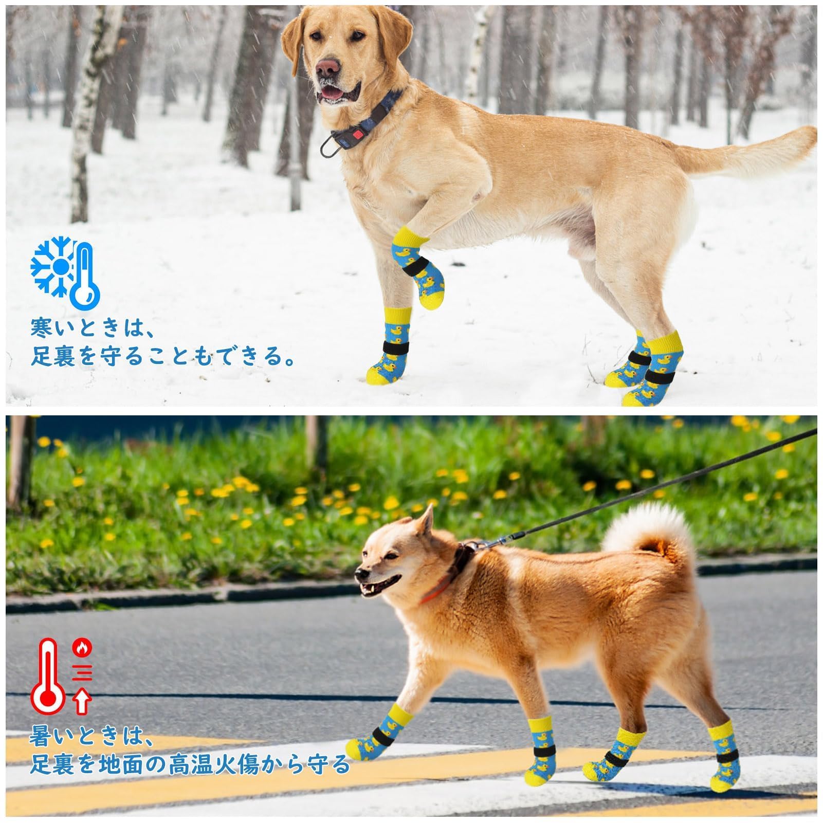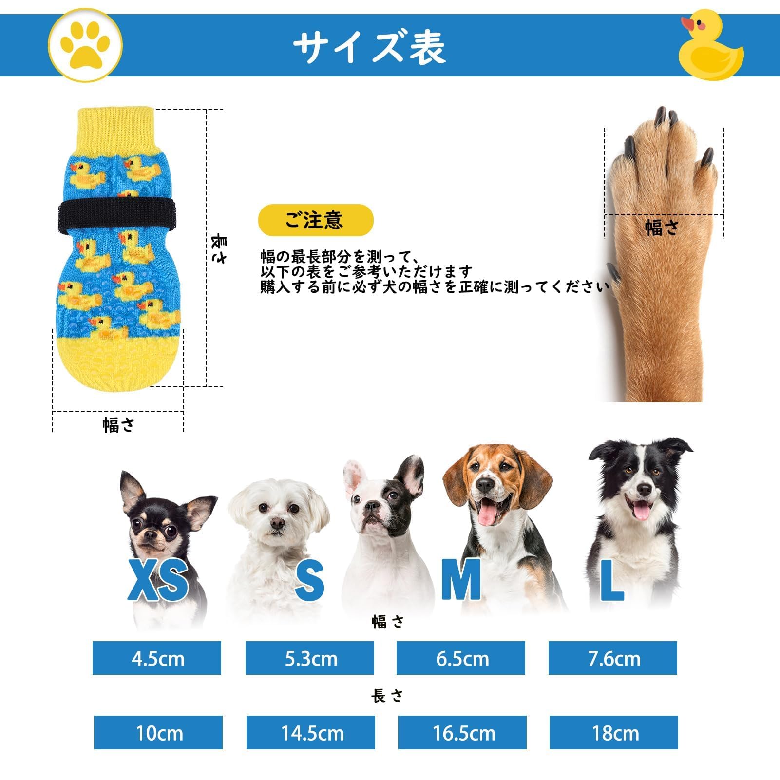 BINGPET 犬 靴下 ペット用靴下 滑り止め 4個セット 肉球保護 犬用靴下 防滑ソックス 柔らかい 脱げない かわいい 転倒防止 室内履き 通気性 老犬 介護サポート 足舐め防止 かわいい おしゃれ 小型犬 中型犬 大型犬 犬靴下 (ダック,XS)