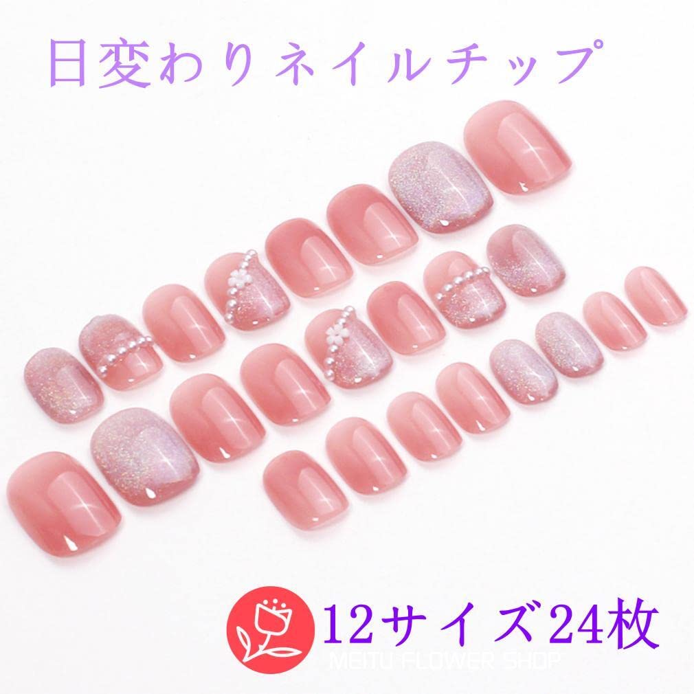 ネイル チップ 3D爪 つけ爪 ショート ネイルシール ネイルチップ ラウンドチップ 和風 人気 短め 両面テープ 花嫁ネイル 24枚入 (メノウ)
