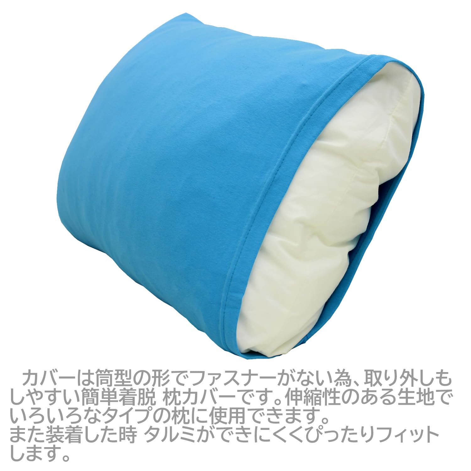 メリーナイト 枕カバー のびのびタイプ スカイブルー 約32×52cm 筒型 綿ニット素材 ピタッと装着 いろいろな枕にフィット 洗える オールシーズン NT3252-73