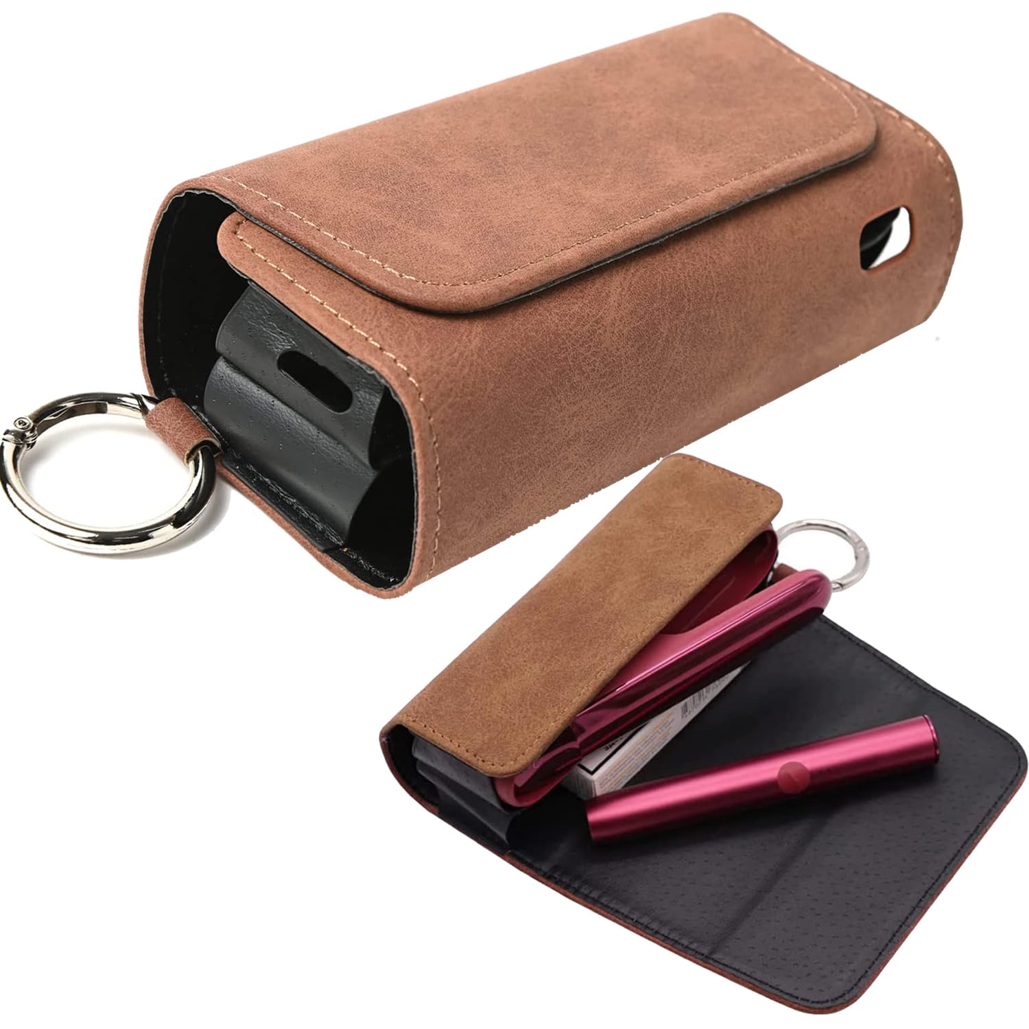 収納ケース iqos対応イルマ用のケース ilumaとの互換性ありのケース PUレザースウェード調 カラビナ付き アイコスイルマ向け保護ケース ヒートスティックまとめて収納 マグネット式 全面保護 (ブラウン)