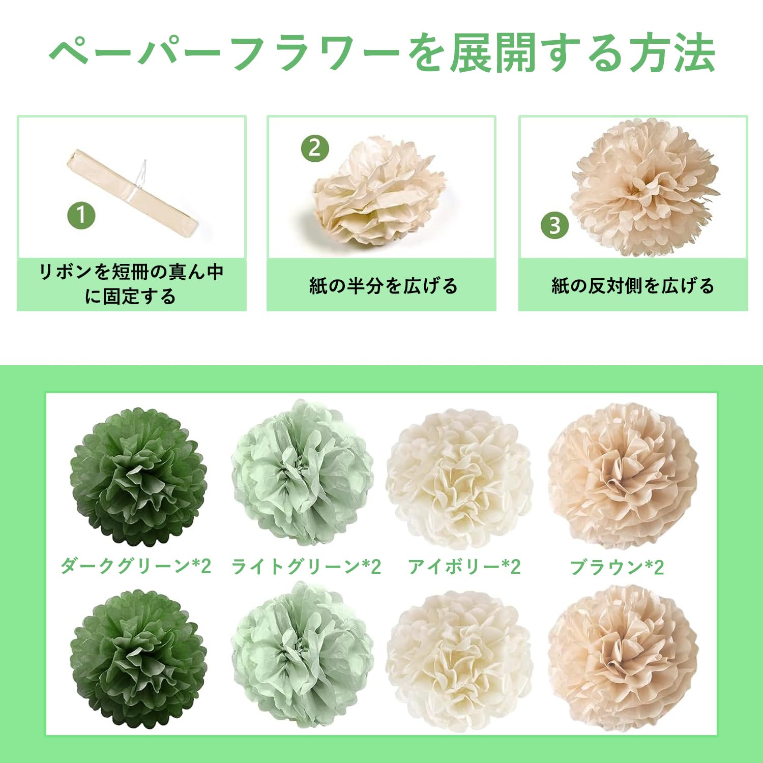 【ユニークで生き生きとしたデザイン】 緑をテーマにした誕生日パーティーがあれば、緑と金色の風船で動物が暮らす森の木々を表現することができます。活力に満ちた緑のテーマ、精緻なペーパーフラワー、花輪、風船が魅力的な視覚効果を醸し出している。