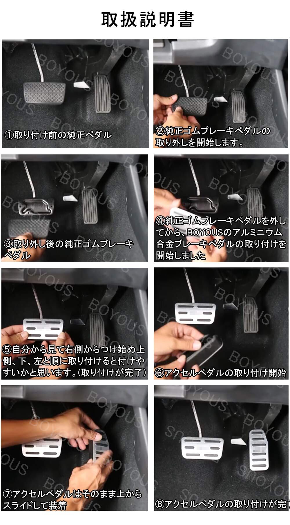 セット内容は、アクセルペダルカバー、ブレーキペダルカバー、取り付け説明書です。