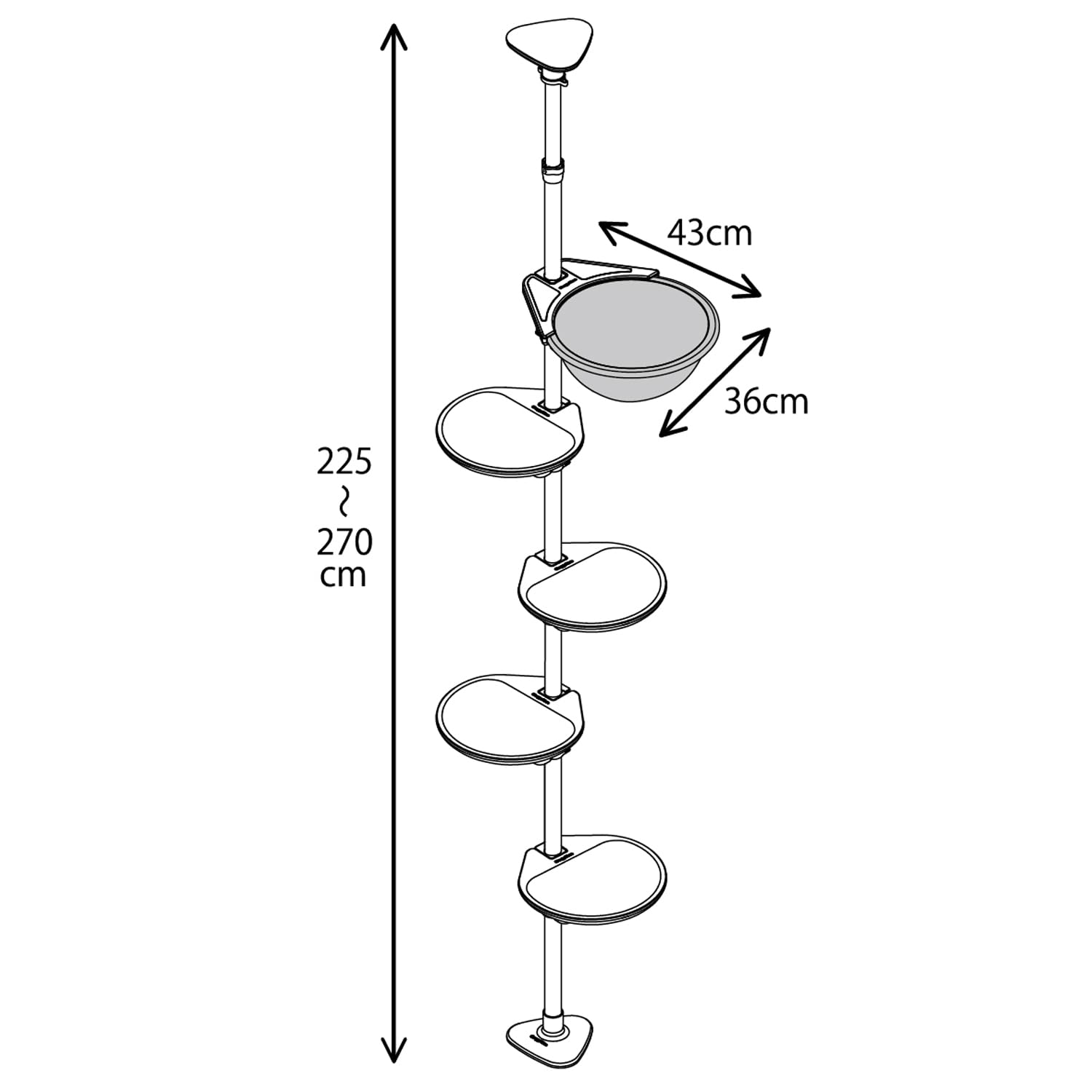 ●省スペースで設置可能なポールタイプのキャットタワー。天井高225〜270cmのお部屋に設置できる。