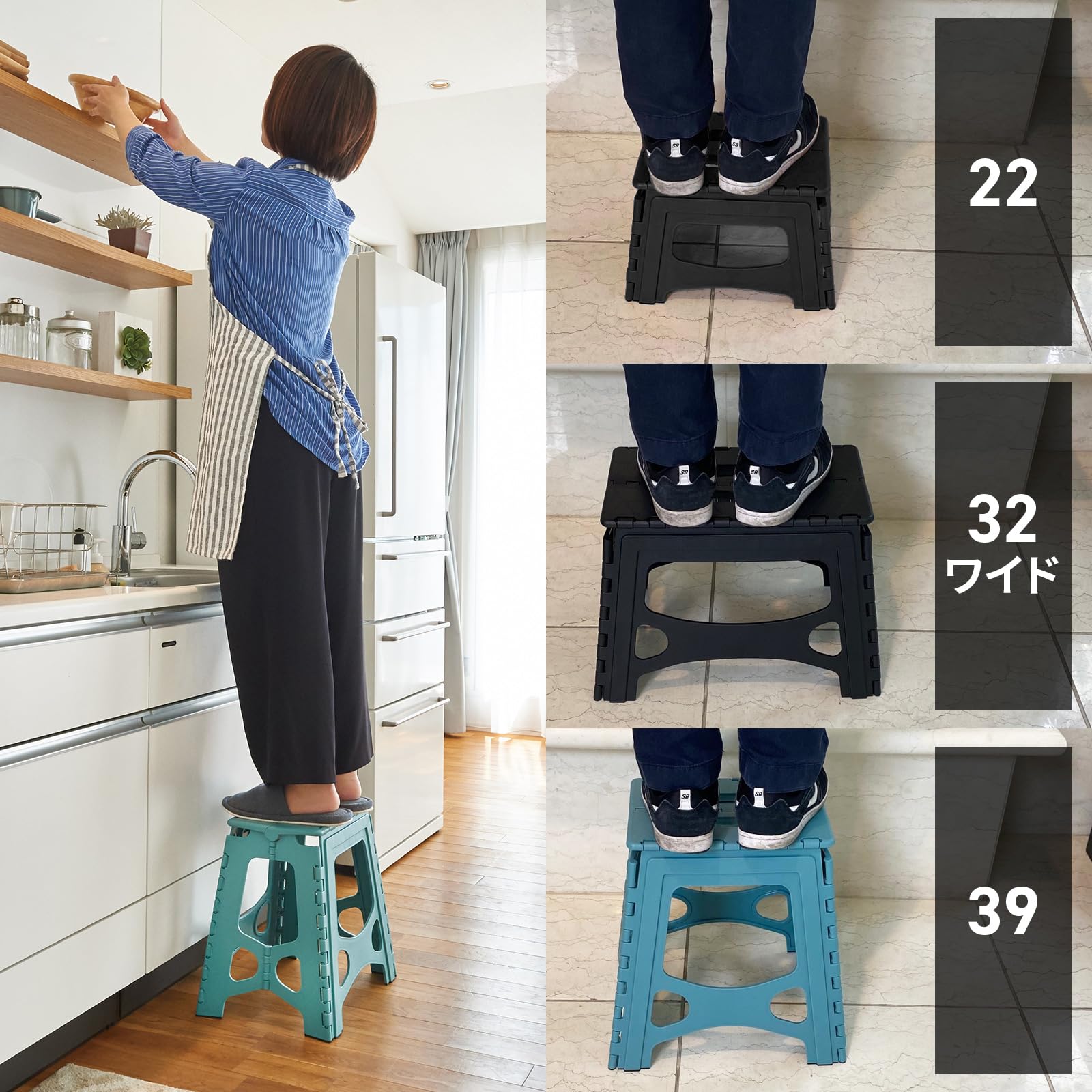 【新着】天馬(Tenma) 隙間に収納できる折り畳み踏み台 フォールディングステップ 室内用 脚立 軽くて持ち手付きのステップ 頑丈【色 ブラック】【耐荷重100kg】【幅38×奥行30×高さ39cm】 | GIGATERA