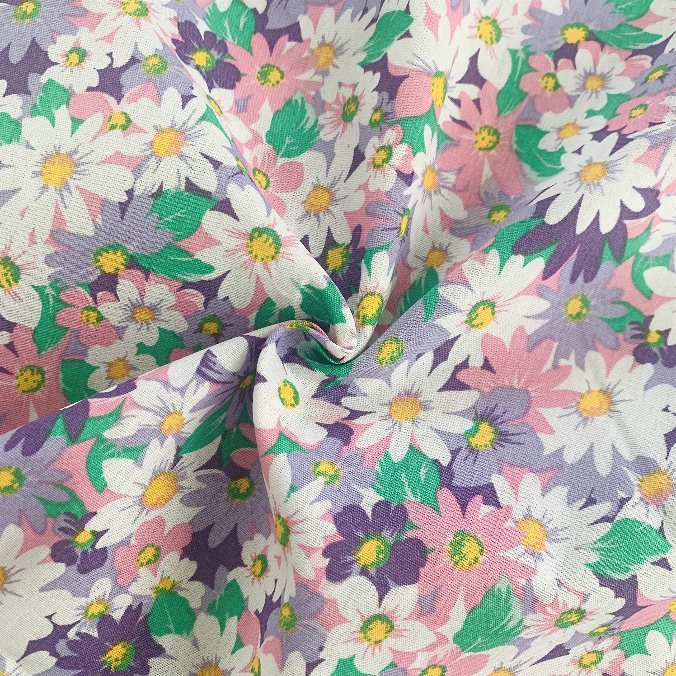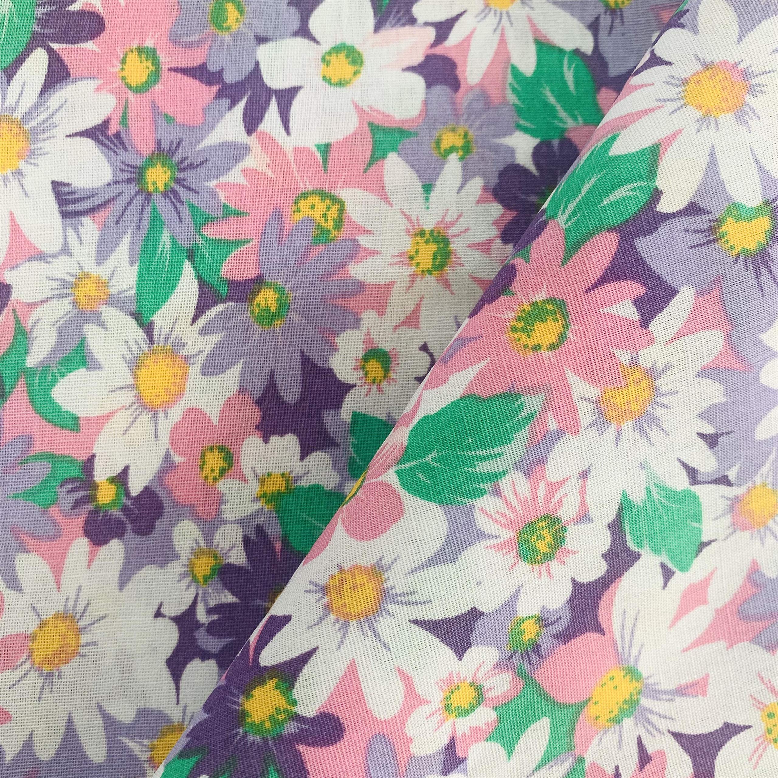 【在庫処分】パッチワーク 手作り布 タペストリー ファブリックパネル カーテン生地 給食袋生地 手芸用 100%綿素材 幅150cm平織 花柄(3サイズ選択可) ((ピンク+紫)花 200cm1枚) | GIGATERA