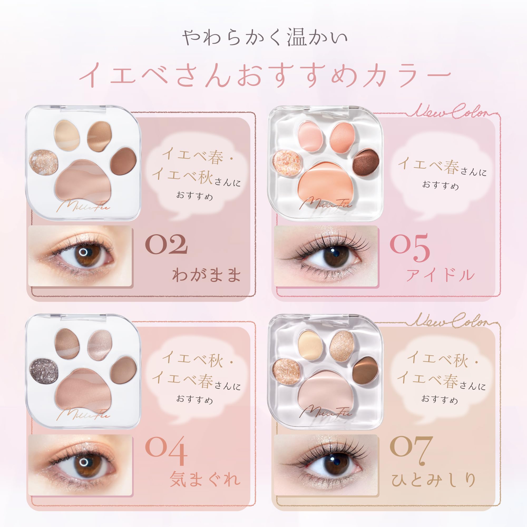 【ミャオパウズ】ねこの手、あなただけに貸してあげる。ねこの性格をイメージしたカラーバリエーション × 肉球モチーフのアイシャドウパレット!