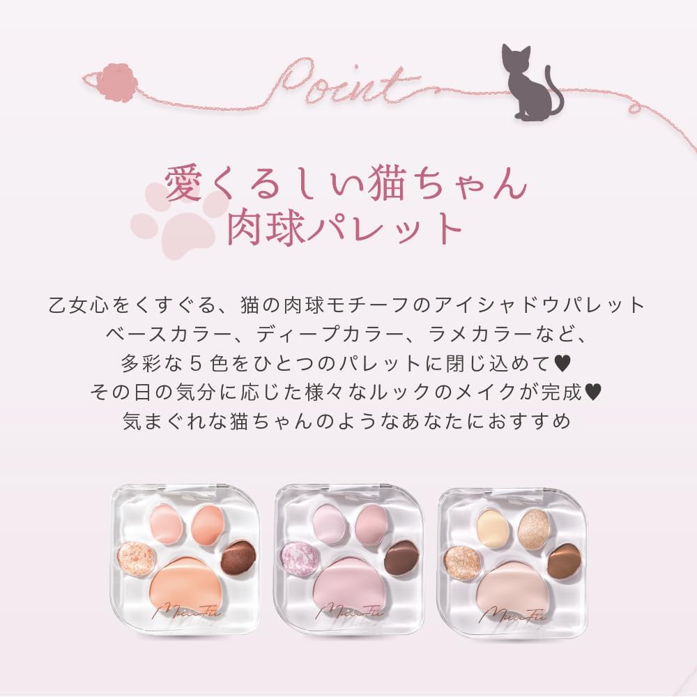 ミルフィー ミャオパウズ アイシャドウパレット(07 ひとみしり) 猫 5色 アイメイク アイシャドウ コスメ ラメ MilleFee 肉球パレット