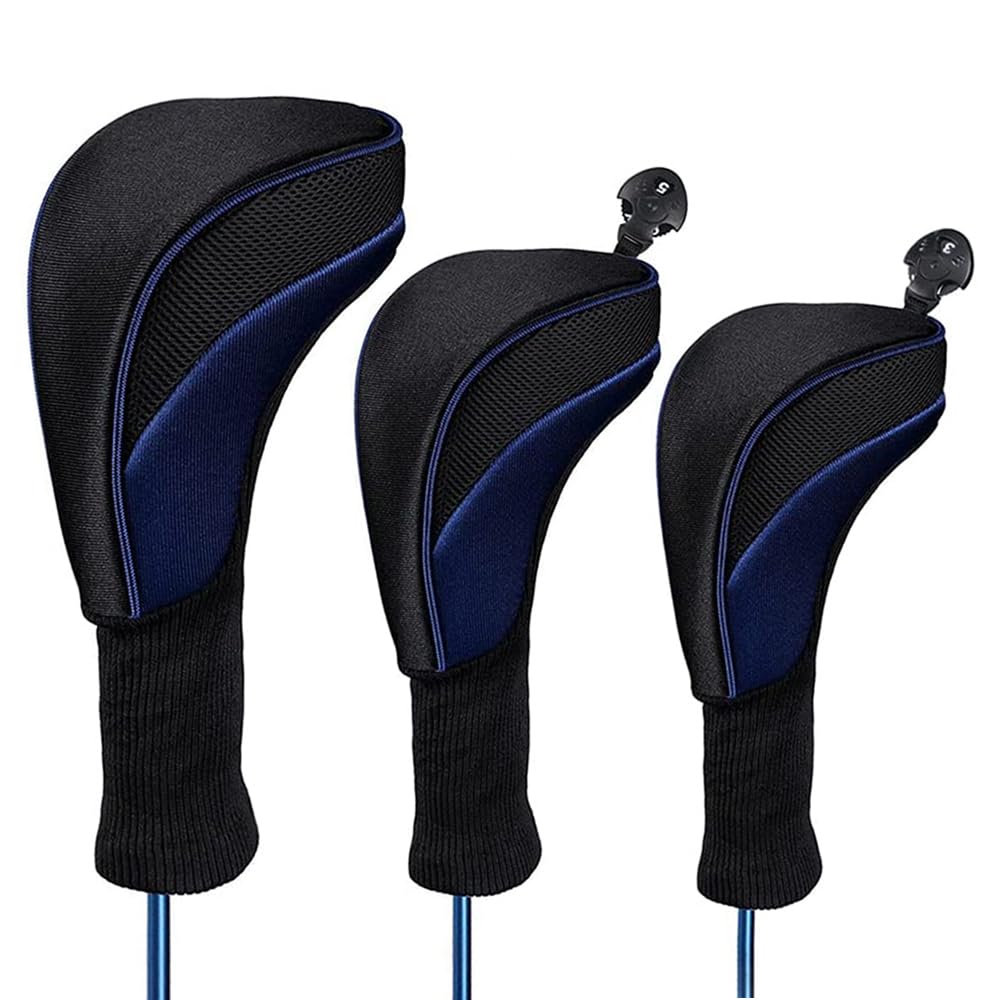 クラブヘッドカバー ロングネックタイプナイロン3点セット クラブウッドカバー ドライバー用 フェアウェイウッド用 ユーティリティ用 番号タグ付き 軽量 耐摩耗 長持ち メンズ・レディース兼用