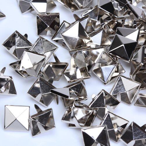 約100pcsセット スタッズ パーツ 鋲 角鋲 ピラミッド リベットスポット パンク風 DIY バッグ ベルト スニーカー カバン 靴のリメイク製作に ハンドメイド 必需品 布革細工 服アクセサリー 12mm 四角錐形 アンティークブラス