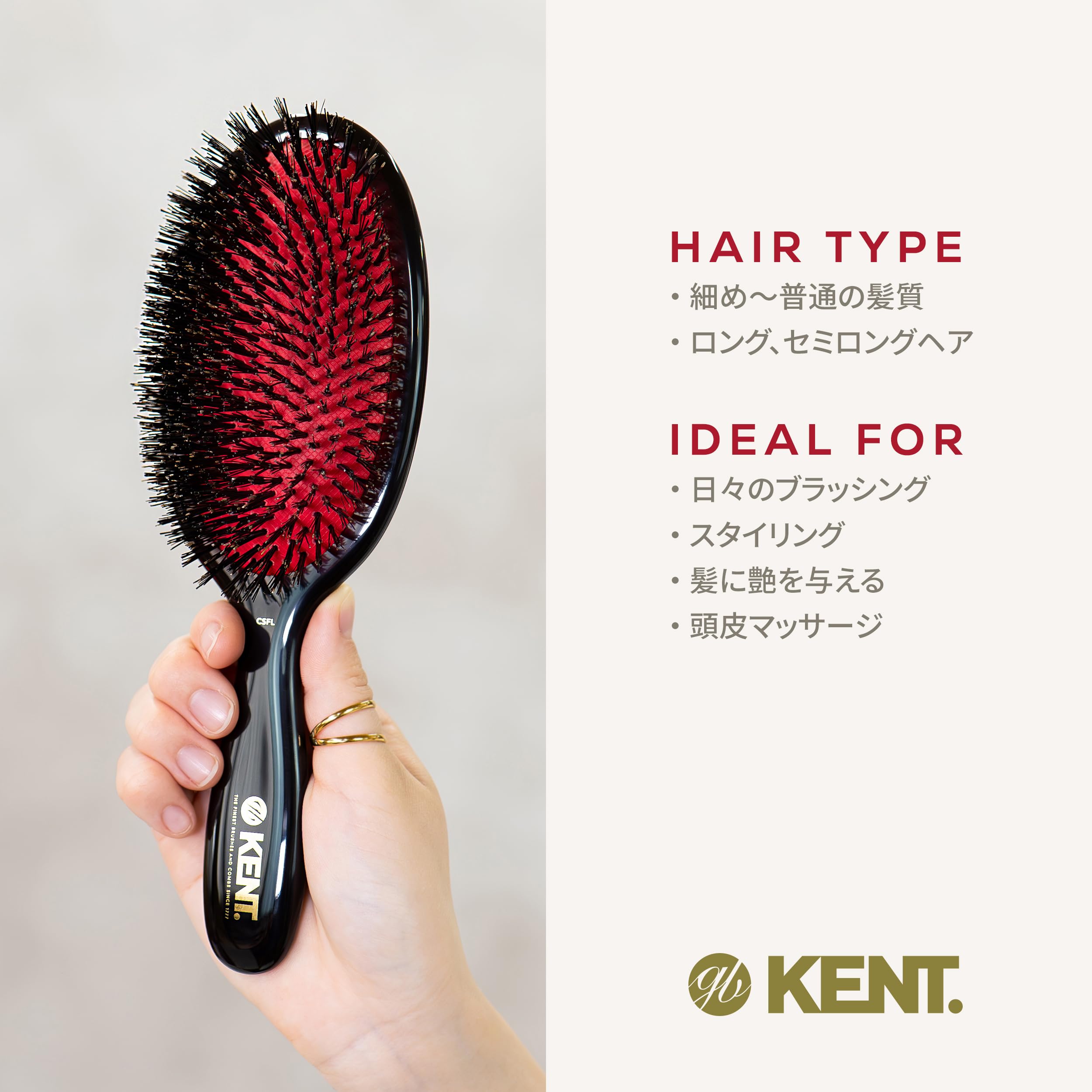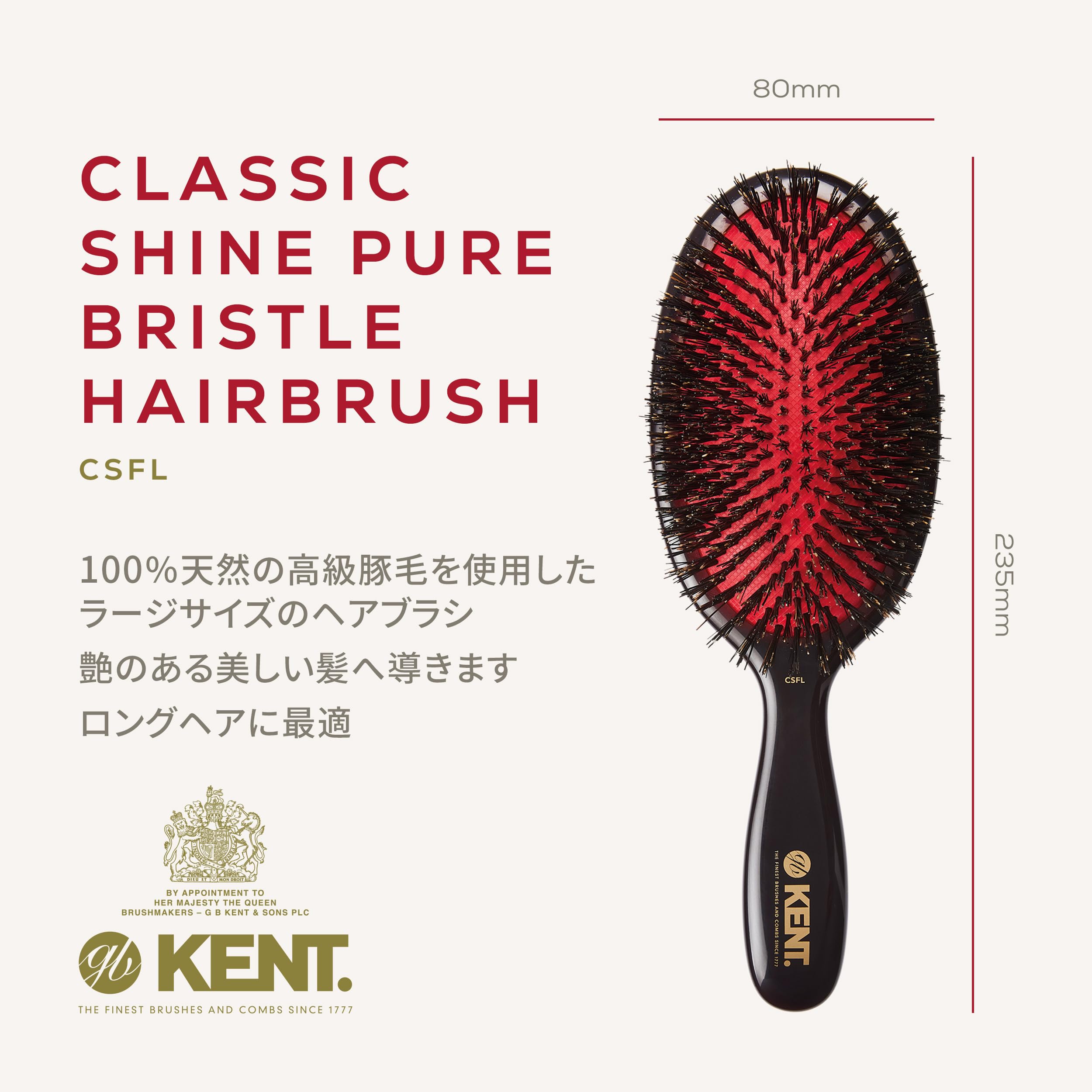 GB KENT ジービーケント 豚毛ヘアブラシ ミディアムブリッスル クッションヘアブラシ ラージサイズ 英国王室御用達 Classic Shineシリーズ CSFL