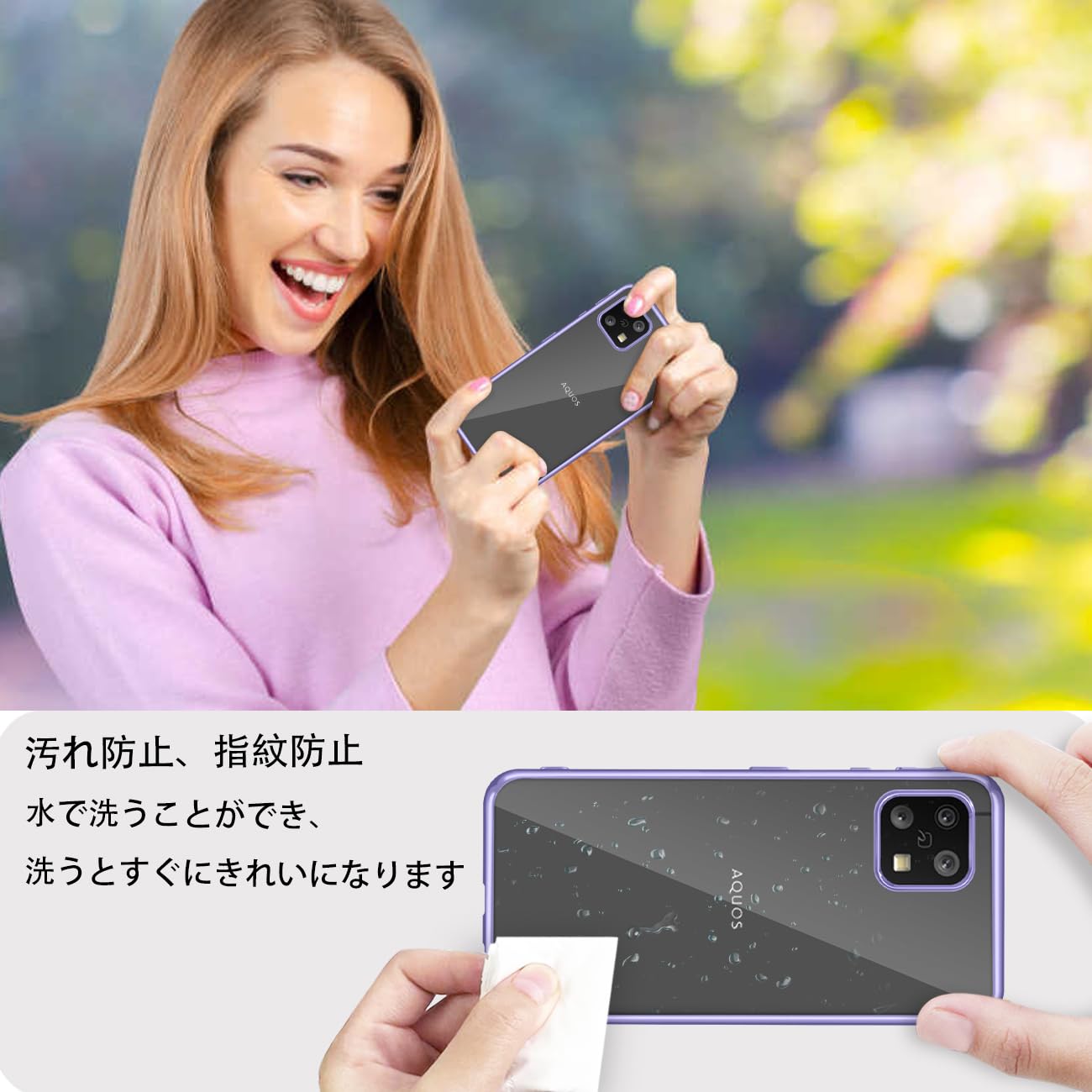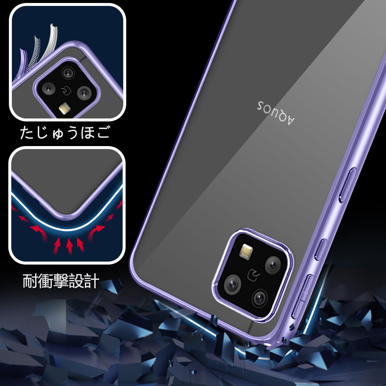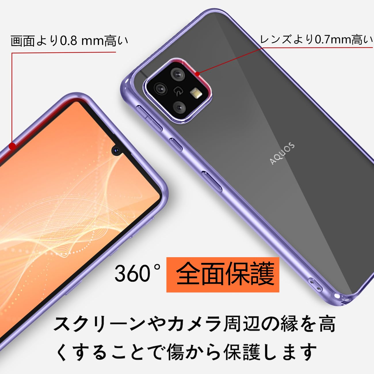 [KEHUALLE] AQUOS Sense4 AQUOS Sense5G 用 ケース クリア [耐衝撃 傷防止 落下防止] アクオス Sense4/Sense5G カバー 透明 [軽量 薄型 黄変防止] 対応 SH-41A SH-53A SH-M15 SHG03 スマホケース(パープル)