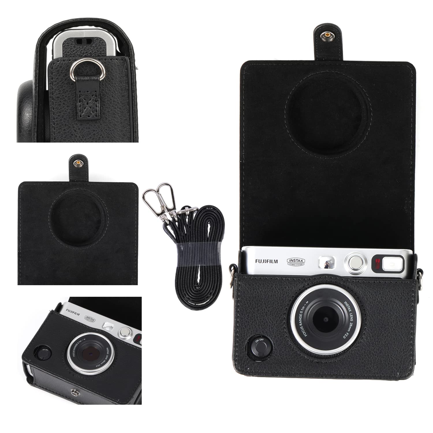 チェキフィルム instax mini Evoケース チェキ 保護カバー 富士フイルム チェキ 全面保護 傷つけ防止 ショルダーストラップ付き PUレザー 携帯便利 取り出し簡単 磁気スナップ付き