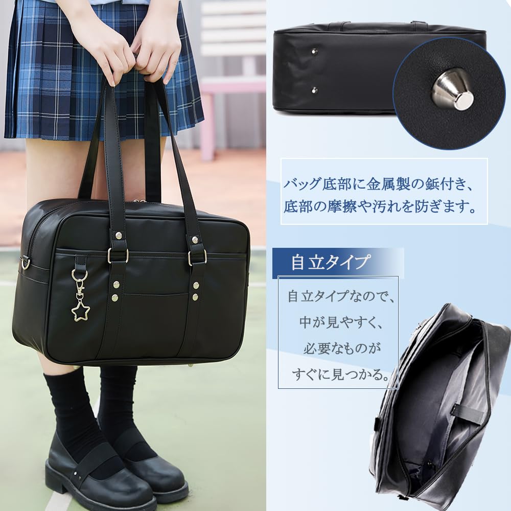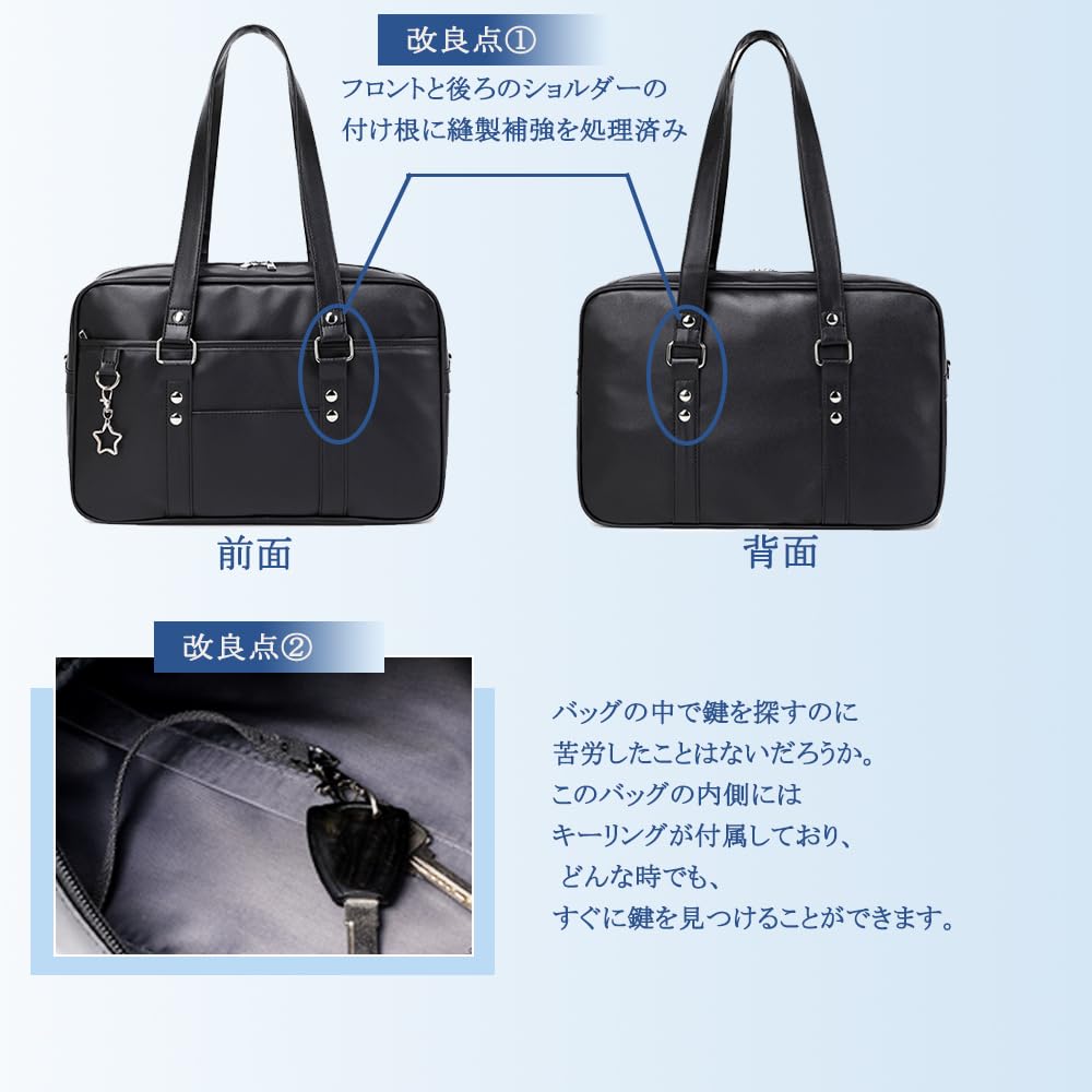 [ARIALK] スクールバッグ 合皮 高校生 女子 通学 ボスドンバッグ スクバ 学生 JK 制服 スクールバック カバン 鞄 PU 大容量 男女兼用 学生鞄 大容量 修学旅行 内側キーリング付き