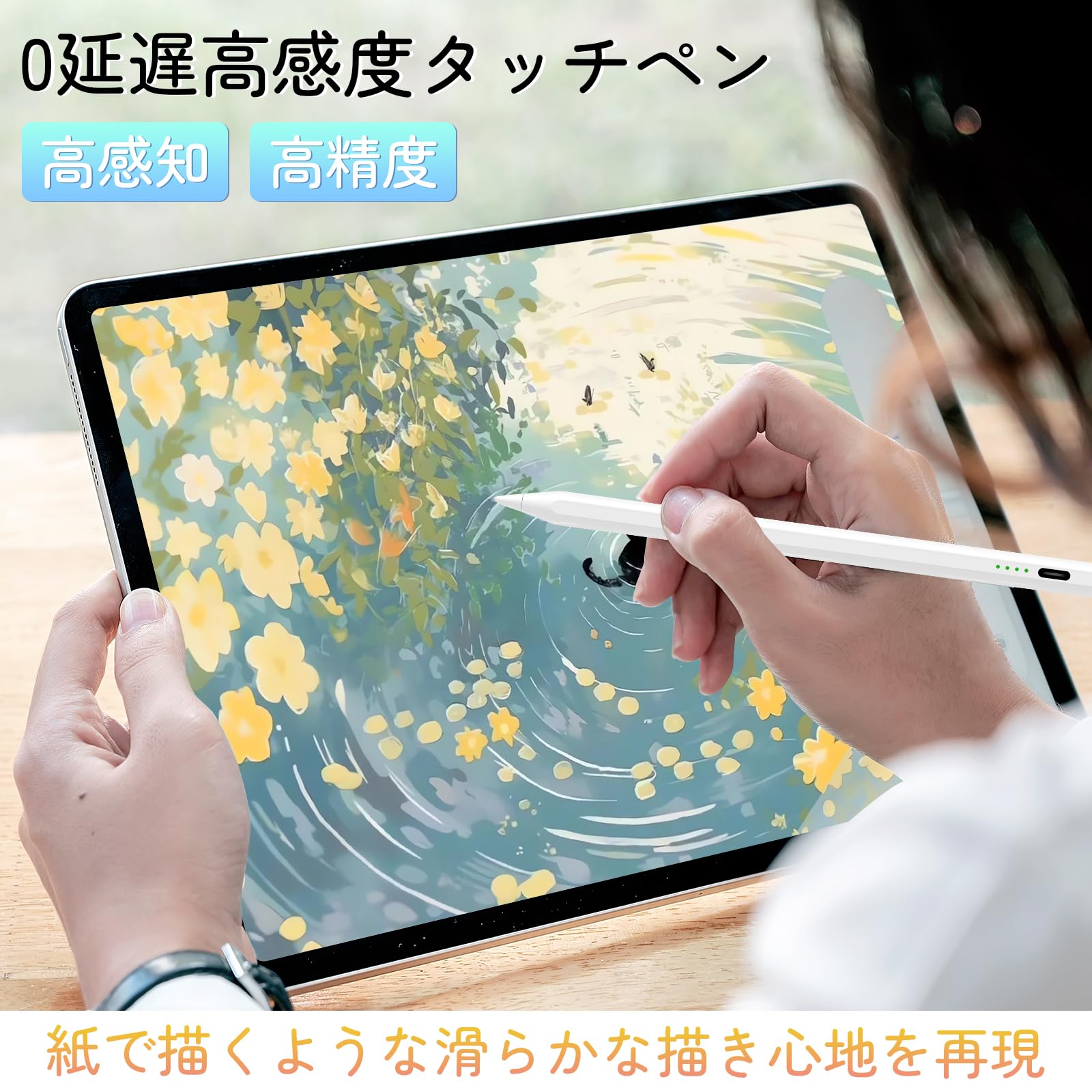 【2025最新型0延遅タッチペン】ipad専用タッチペンは高感知&高精度のセンサーを搭載し、鉛筆のような自然な書き心地と、なめらかな操作がポイントです。直径1.5mmと極細のペン先は、描画・書き込み・メモの作成などに使いやすいタッチペンです。ペン先は滑らかでデバイスとの摩擦を軽減し、スクリーンを傷つけにくい仕様となります。最小限の予算で純正と見劣りしないの滑らかな描き心地を実現し、初心者もプロも愛用なペンシルです。