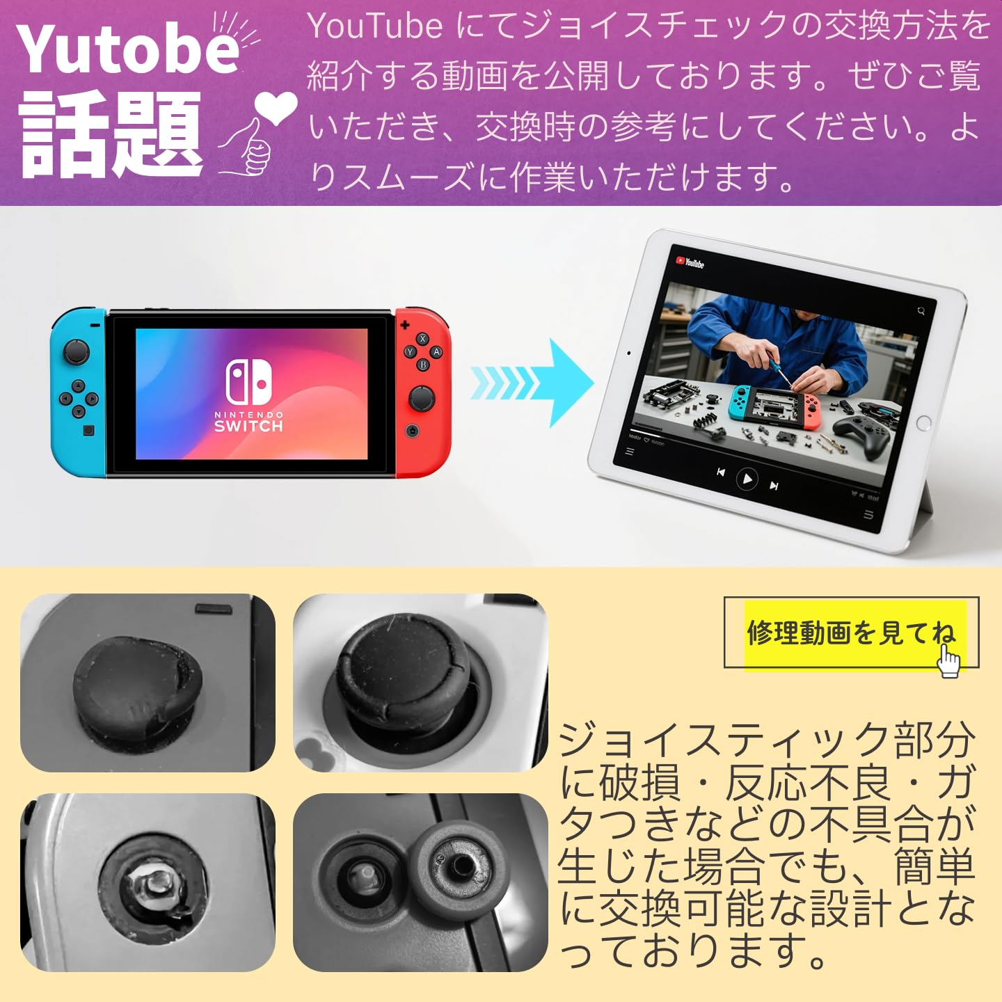 【第四世代&高品質なスティック4個入り】 故障しやすいアナログスティックが2個も入っており、複数回の交換にも対応できます。高感度・高耐久設計で、純正品と変わらない操作性を実現。Switch・Switch有機ELモデルの両方に対応しており、長く使用可能です。