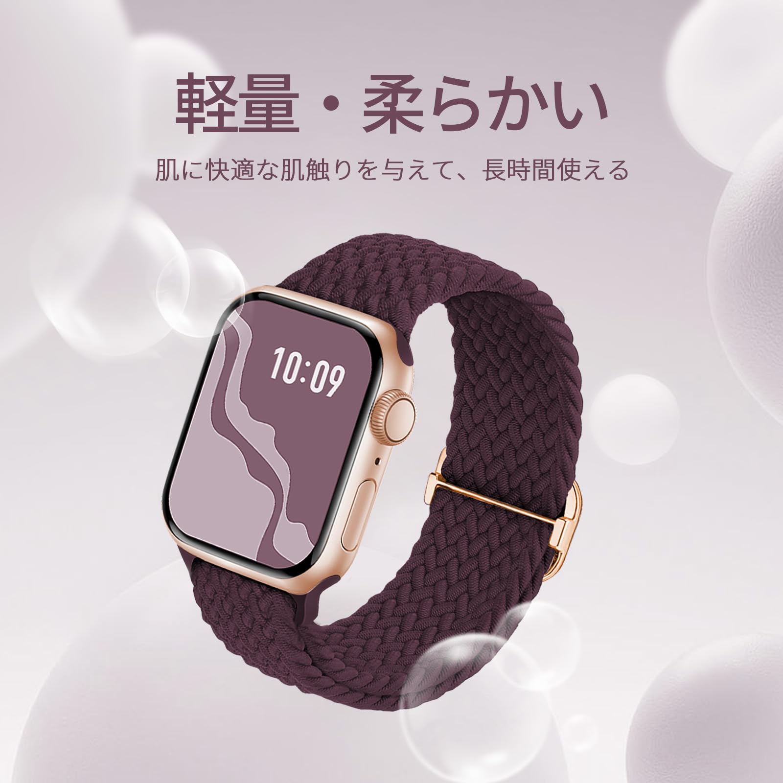【ユニークな編み込みデザイン】アップルウォッチ 編み込みバンド。伸縮性のある高品質なナイロン糸素材で、高精度な編み込む技術でバンドを織って、特殊な加工で糸が抜けにくいし、何度の着脱も変形にくいです。
