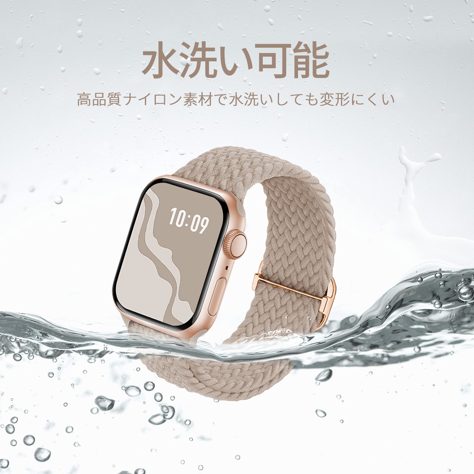 【通気性抜群・水洗える】アップルウォッチ 弾性バンド。網目で通気性が抜群で、スポーツやアウトドアでも乾いた状態を保ちます。ジム、登山、ハイキング、水泳、キャンプ、旅行、さまざまなシーンに適用できます。変形にくい素材なので、汚してしまった場合でも丸洗いこともできて、便利です。