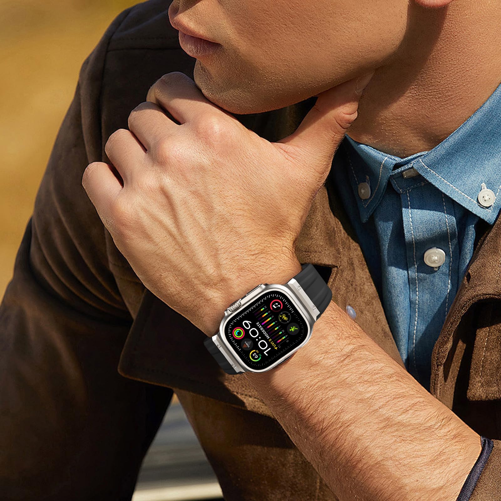 【Ultraに最適なサンドブラストコネクタ】金属コネクタはサンドブラスト加工を施して金属の質感を出し、チタンカラーはWatch Ultraのチタンケースに完璧にマッチし、実用的な機能性と高級感とファッション性の組み合わせを実現しています。
