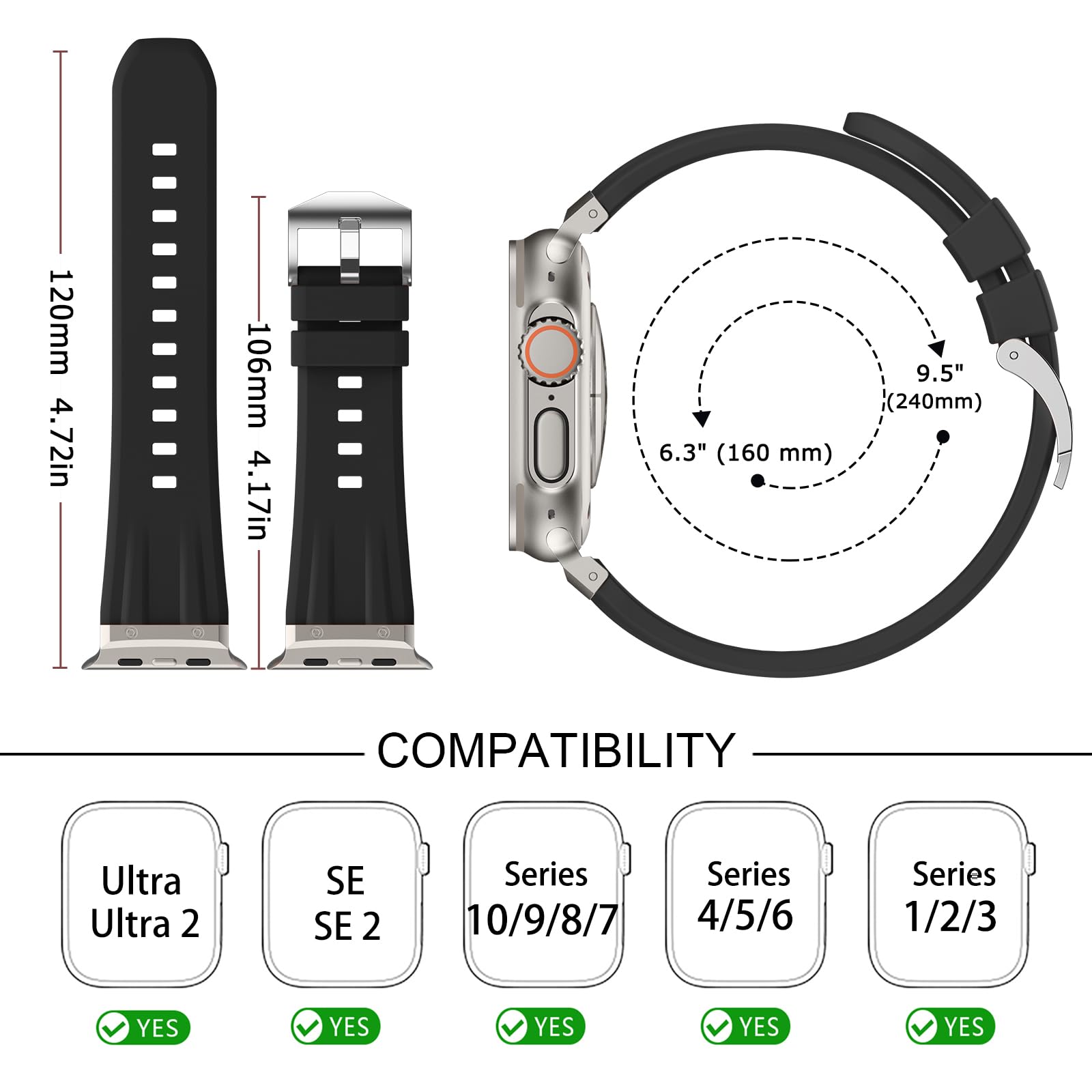 【サイズ調整可能】バンドは手首のサイズ6.3インチ〜9.5インチに合わせて調整可能で(160mm〜240mm), 幅広いサイズ調整が可能で、しっかりとフィットし、男性にも女性にも適しています.