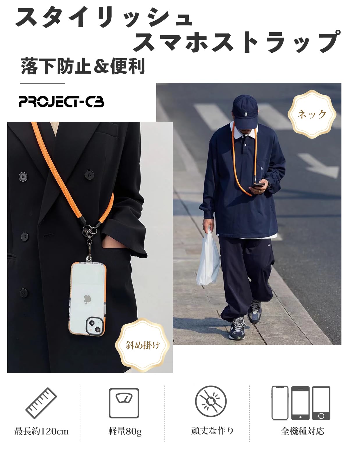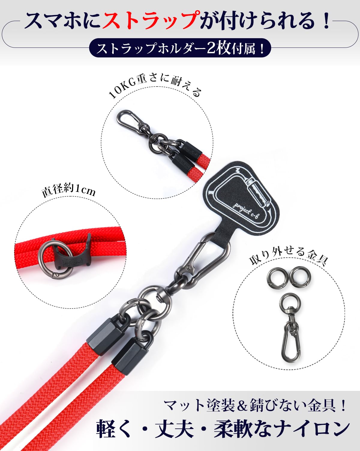 [project-cb] スマホストラップ ストラップホルダー *2 首掛け ショルダー 斜めがけ 極太 携帯ストラップ アウトドア 落下防止