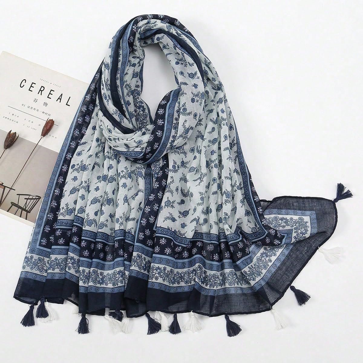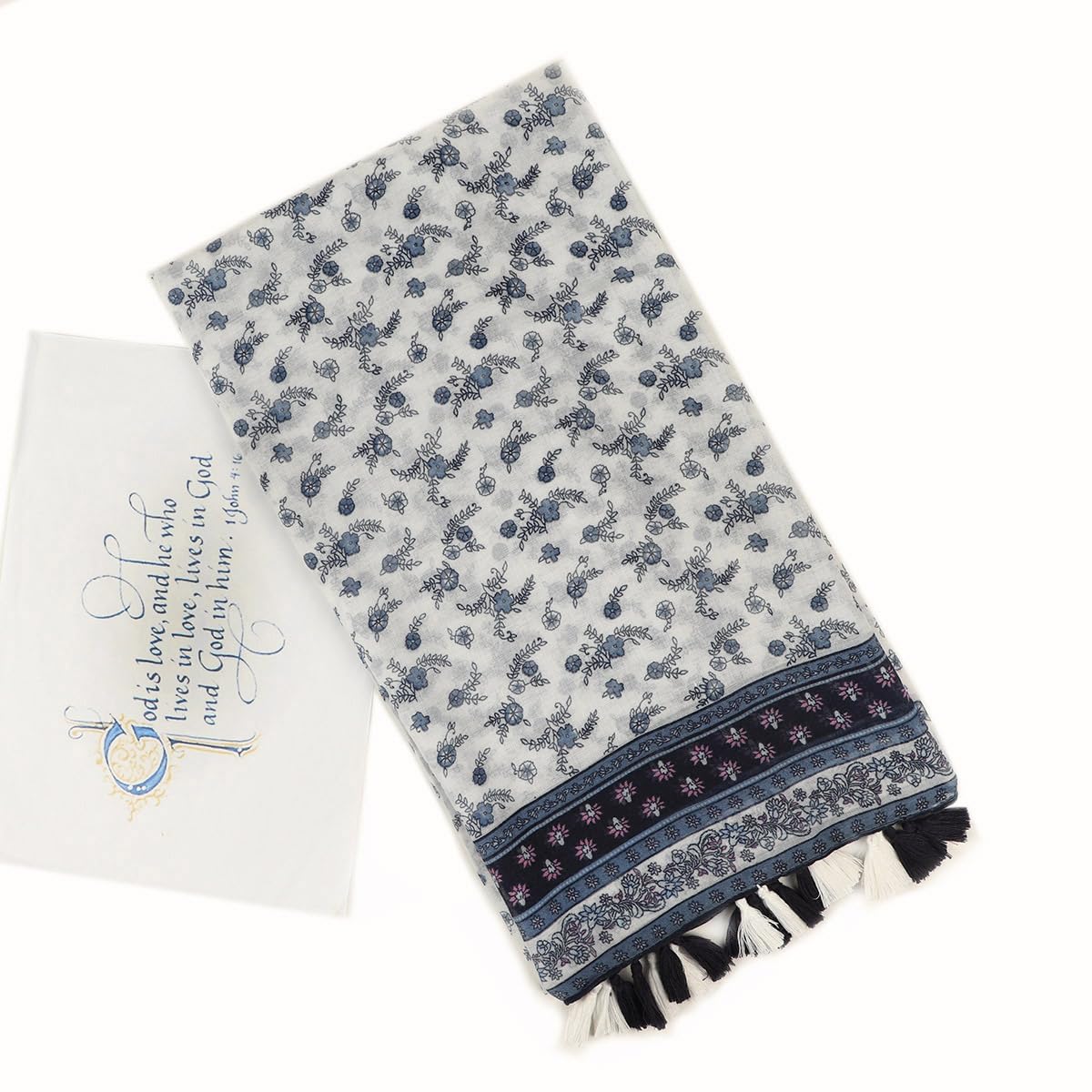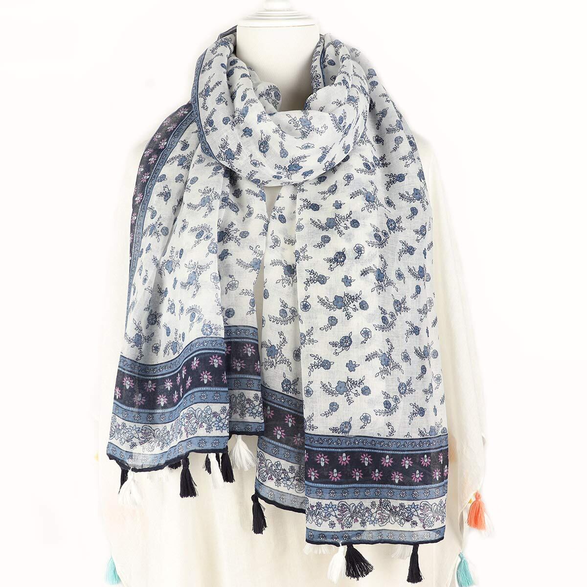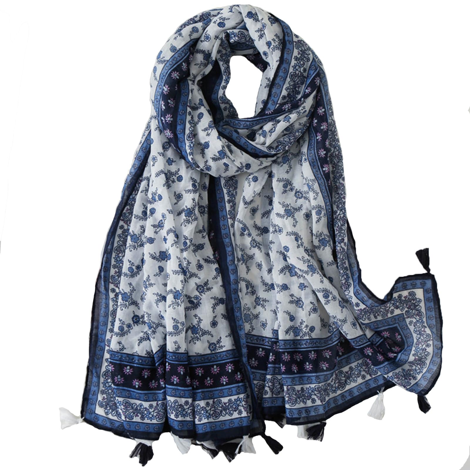 [HURESON] マフラー 薄手 花柄 ストール 夏 uv ショール 大判 春夏 小顔効果 巻き物 肩掛け 母の日 プレゼント 冷房対策 日焼け防止 UV対策 (青)