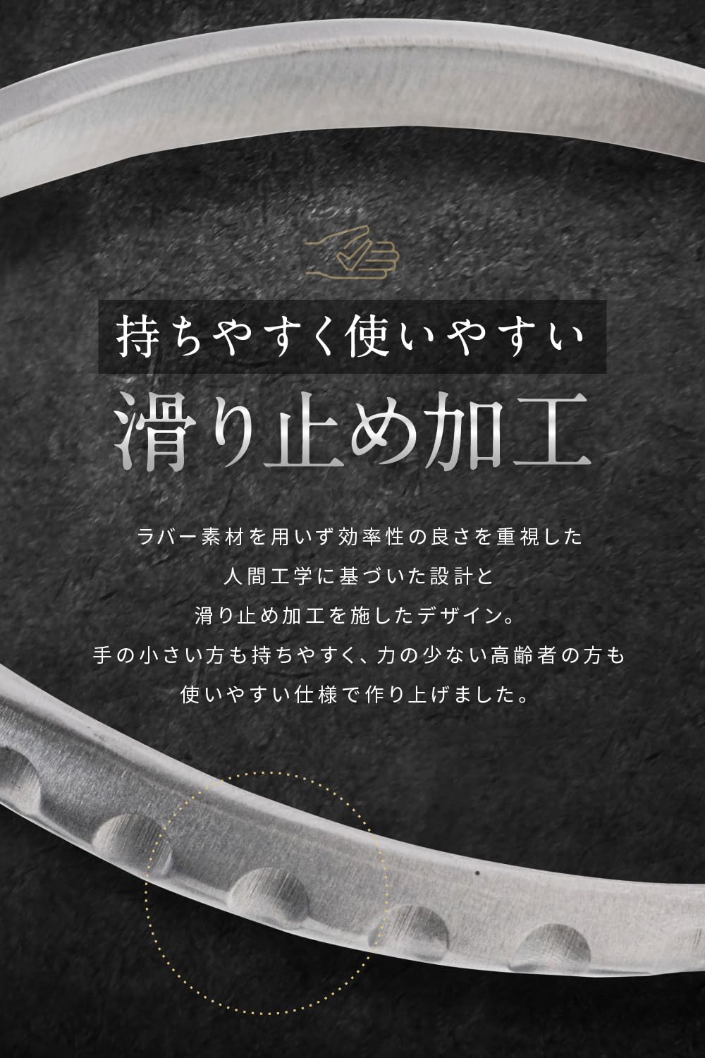 【握りやすい持ち手】手の小さい女性や、力の弱い方でもお使いできるよう、持ち手には溝を作ることで余計な部品をつけずにコンパクトな設計となっております。