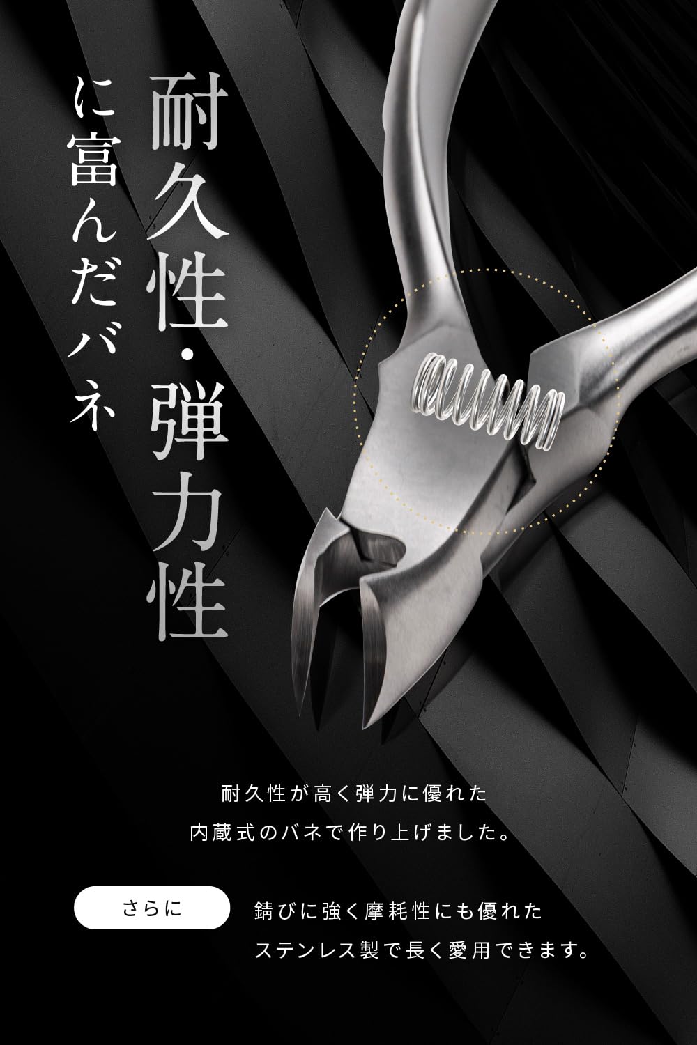 【ニッパー爪切りとは?】「硬い爪」「厚い爪」「巻き爪」に適した爪切りです。そのため、通常は「足の爪」に使用されます。工具のニッパーのようにてこの力を利用し、小さい力で切りやすいように工夫されております。通常の爪切りでは切りにくい爪の端にも届き、細かく切ることができます。