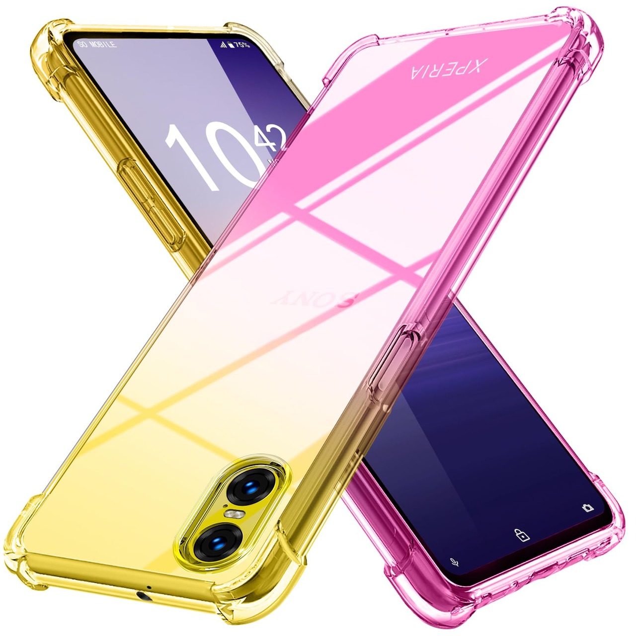 Xperia 10 VI 用 ケース クリア SO-52E SOG14 XQ-ES44 用 ケース 薄型 グラデーション色 ケース 軽量 tpu 耐衝撃 スマホケース 透明 米軍MIL規格取得 おしゃれ 黄変防止防塵一体型 人気 エクスペリア 10VI 用 携帯カバー ゴールド/ピンク MD-SXJB-58-04