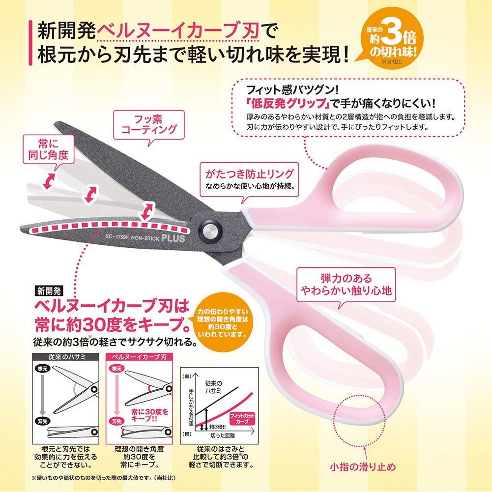プラス はさみ フィットカットカーブ フッ素コート 低反発グリップ 粘着テープ のり ベタつかない 30度 SC-175SF ホワイト/グレー 34-515