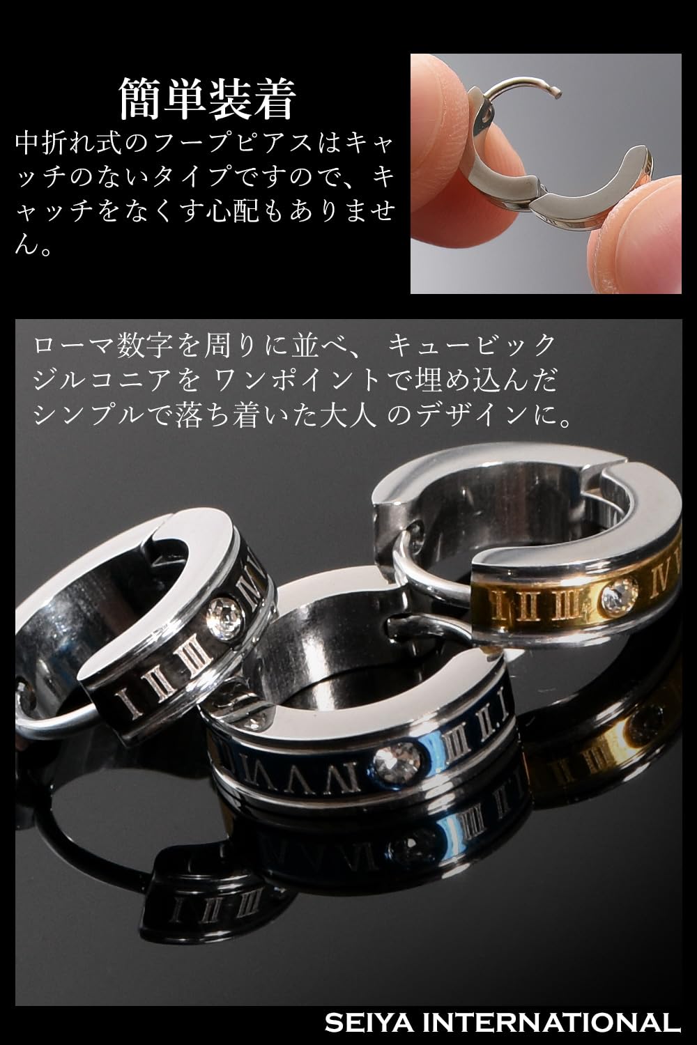 [SEIYA INTERNATIONAL] ピアス メンズ フープピアス リングピアス ローマ数字 ステンレス 18G