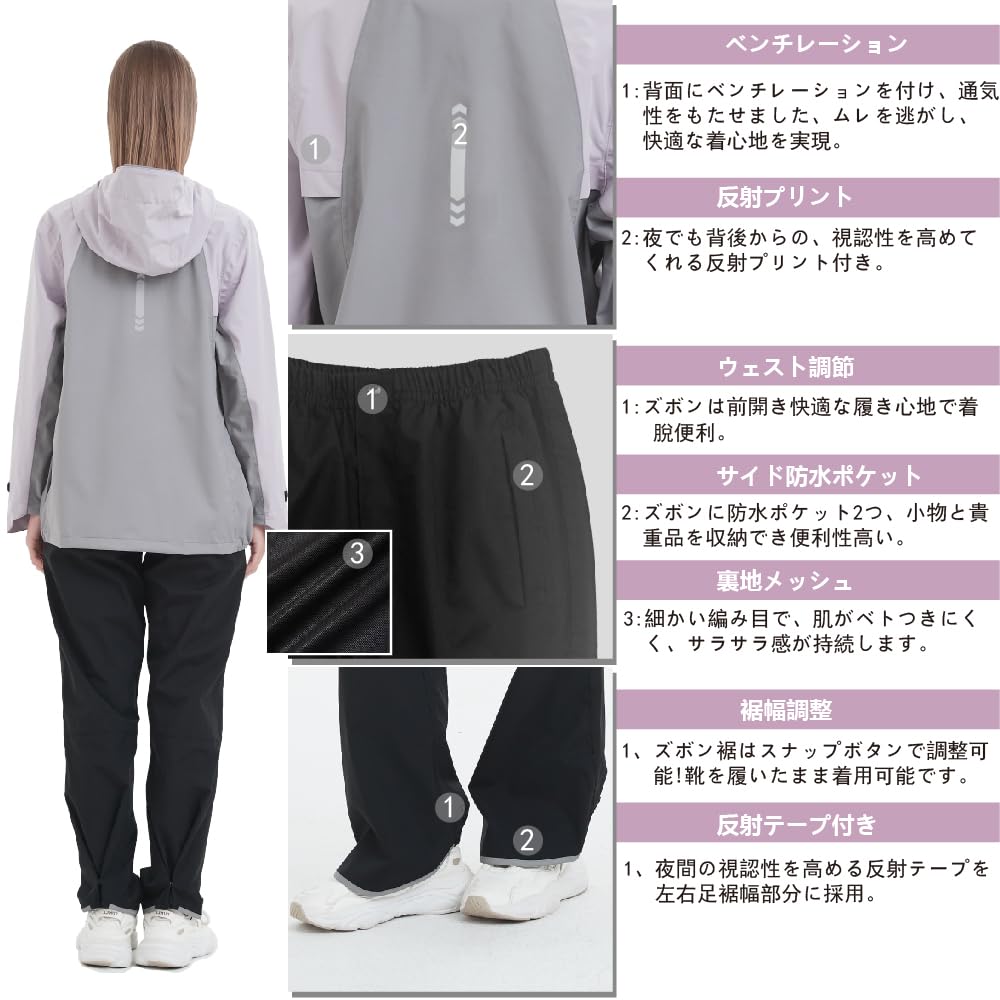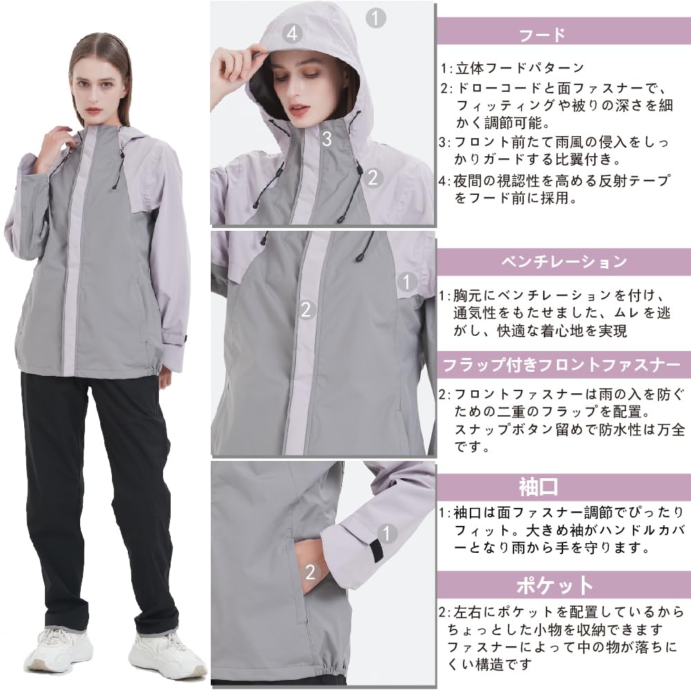 [TopKylin] レインコート レディース レインウェア 上下 セット レインスーツ ゴルフ カッパ 雨具 ウインドブレーカー レインジャケット アウトドア 自転車 通勤 通学