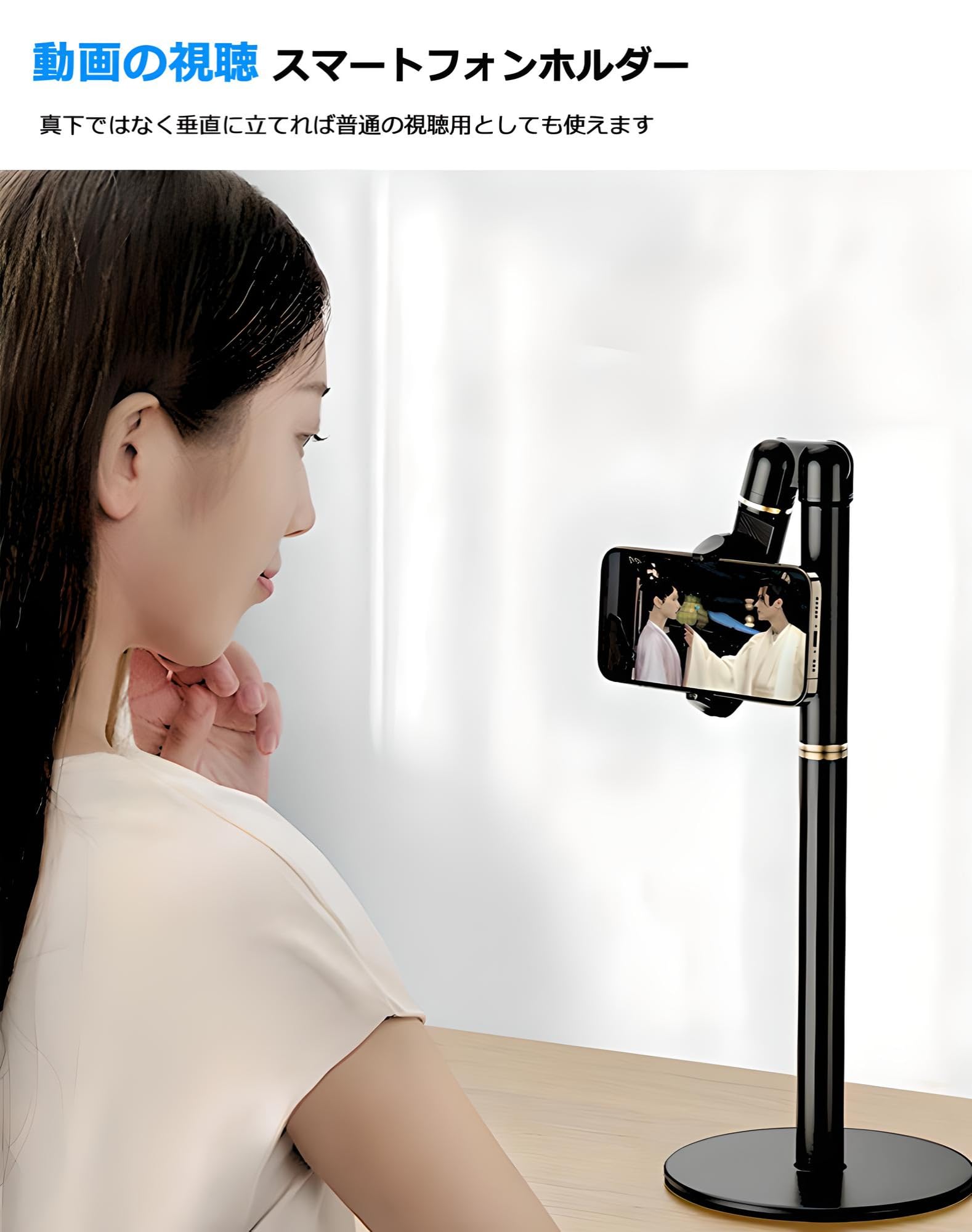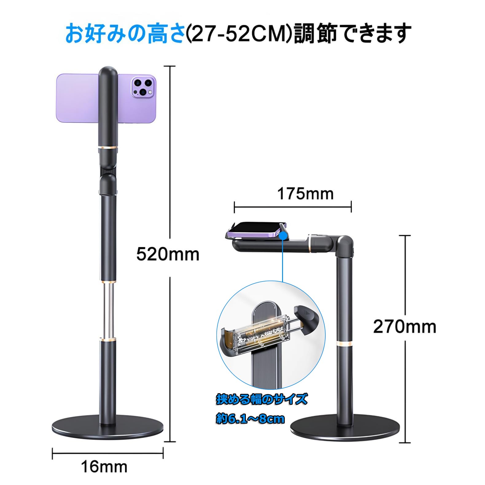【数量限】俯瞰撮影 スマホホルダー LUONOCAN iphone 手元 撮影用 オシャレ 携帯 固定 スマホスタンド 動画撮影 物撮り web面接 など 卓上 便利グッズ 高さ 角度調整 (ラウンド台座) | GIGATERA