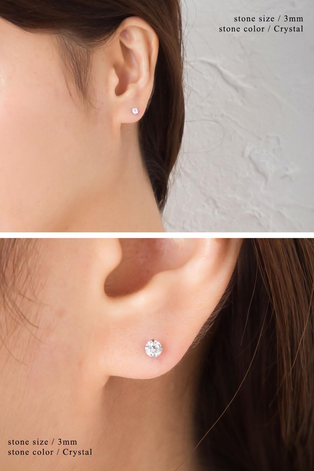 [ジュエルボックス] JewelVOX ピアス 14G 16G 18G 立て爪 サージカルステンレス316L キュービックジルコニア ボディピアス 軟骨ピアス 金属アレルギー対応 クリスタル【3mm】 14G【軸8mm】