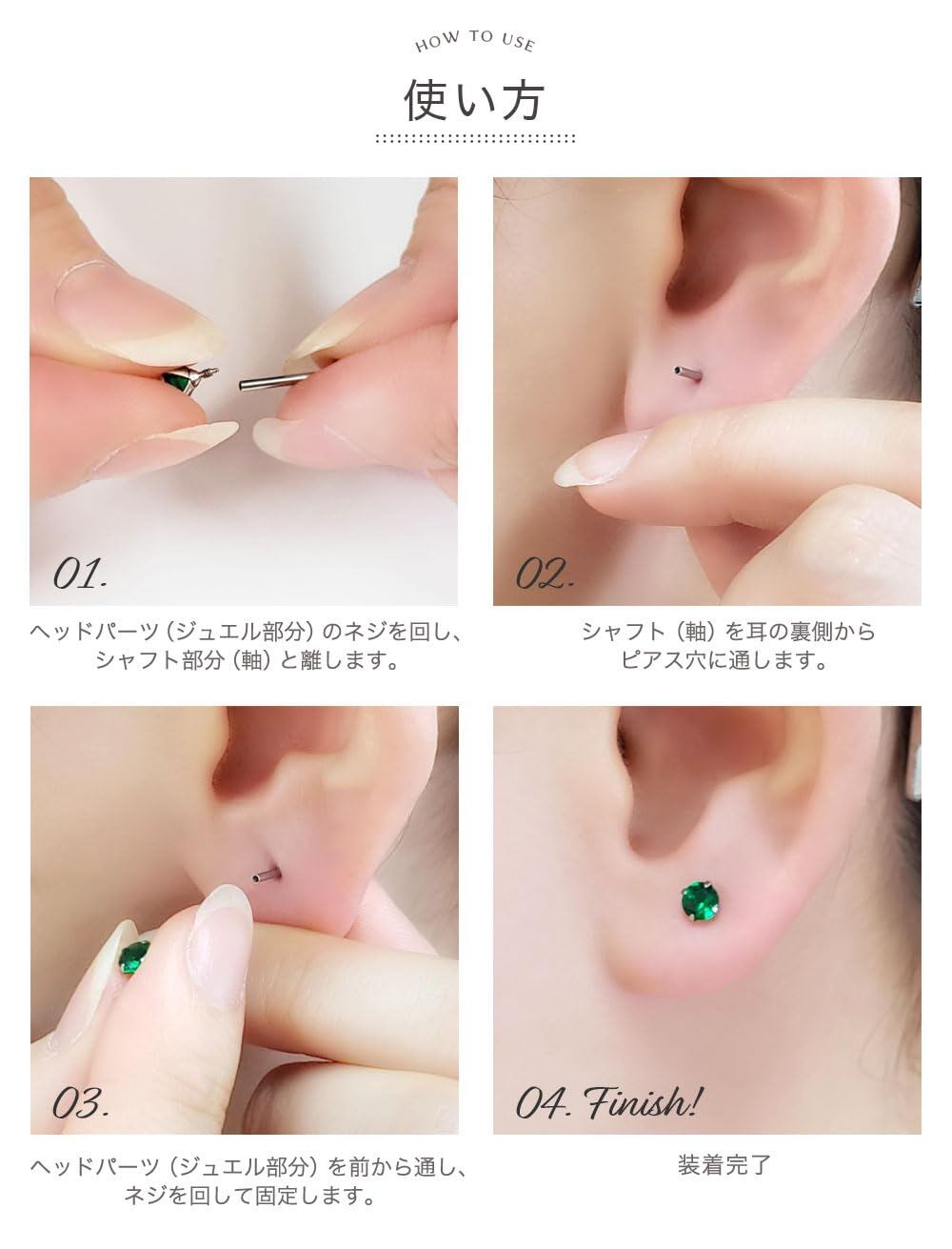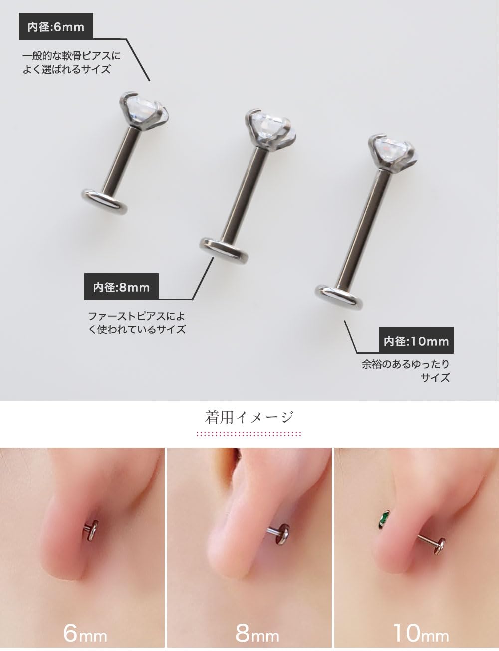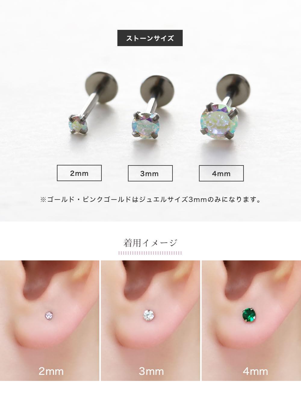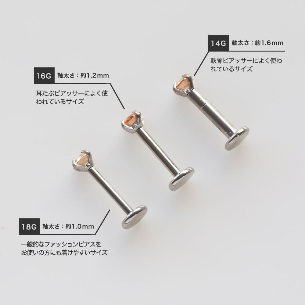 【お肌に優しいサージカルステンレス】金属アレルギーを起こしにくく、お肌に優しいサージカルステンレスなので、サビや変色にも強く、安心してお使いいただけます。ゲージ(軸の太さ)や内径(軸の長さ)、石の大きさも選べる豊富なラインナップです!