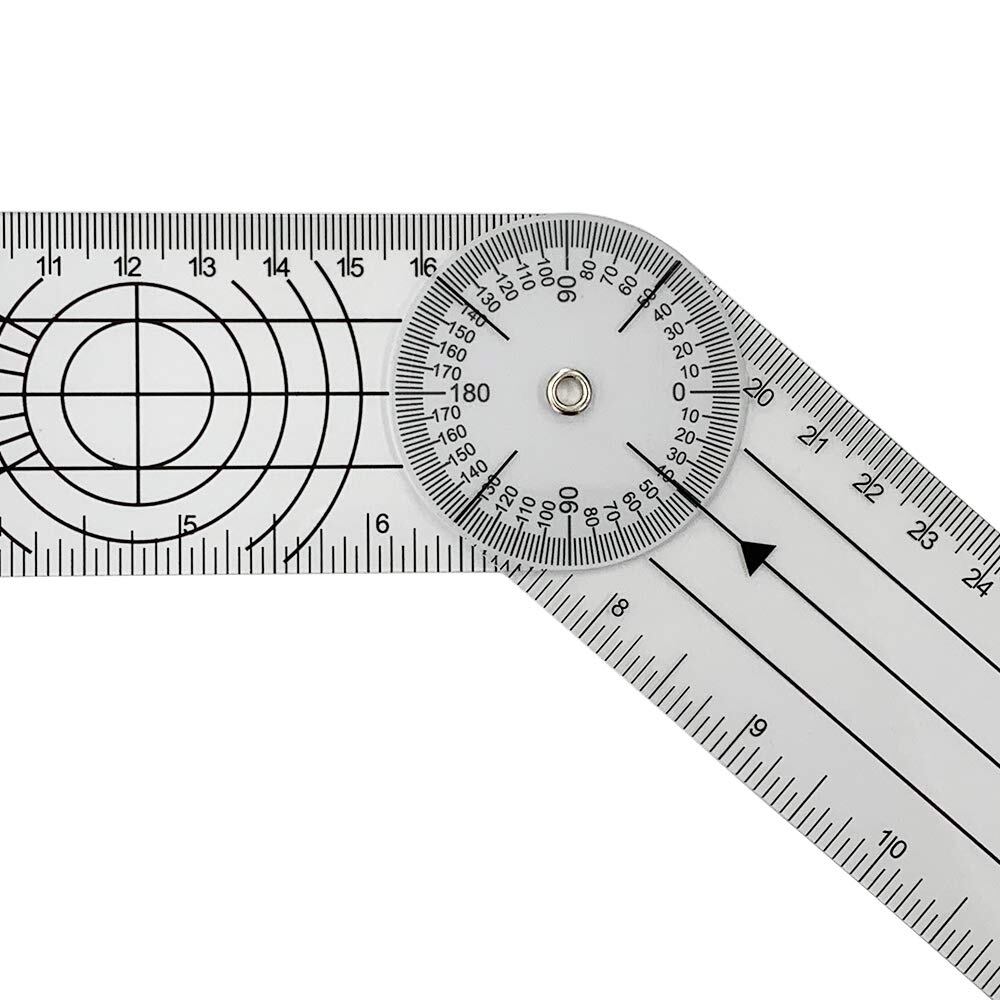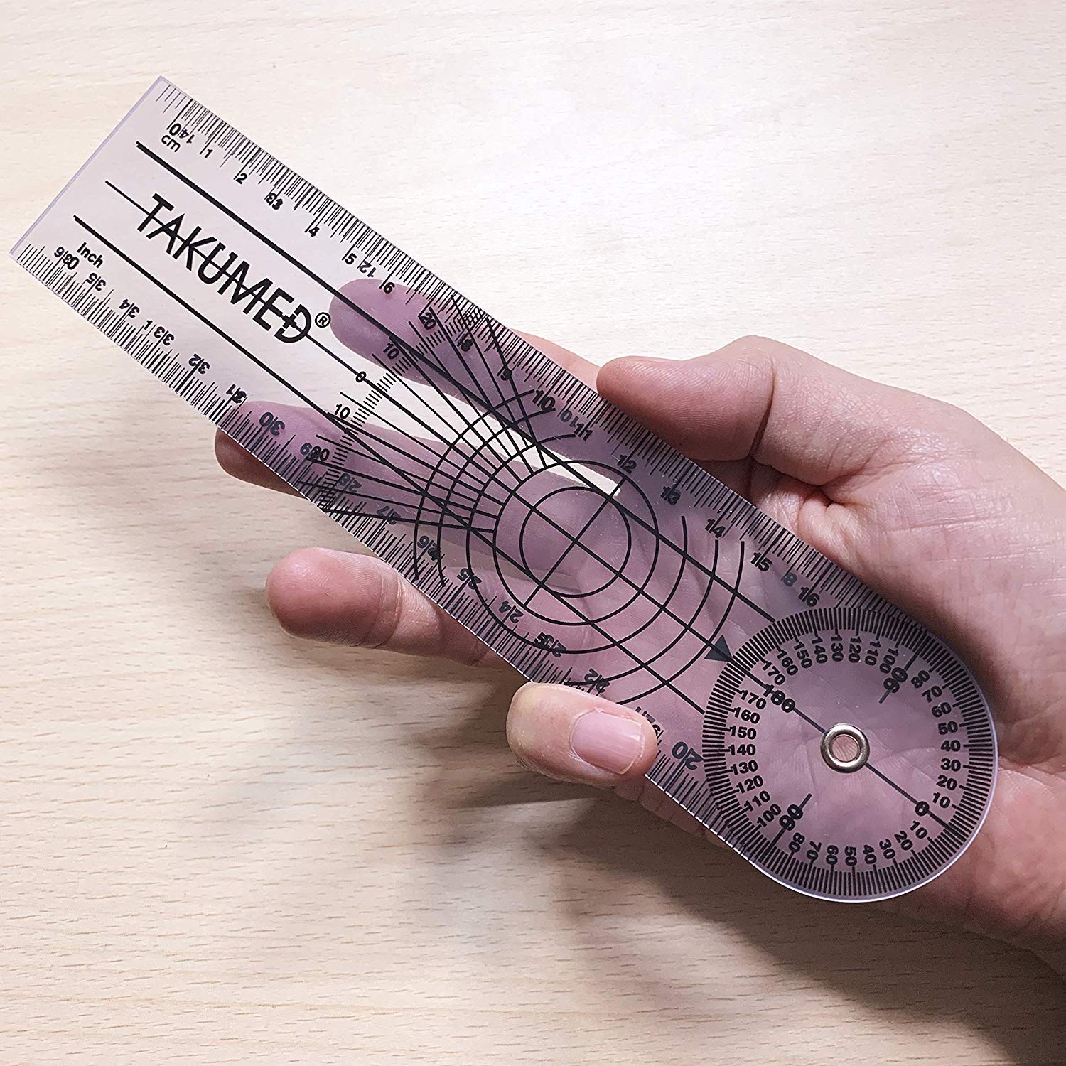 角度や長さおよび可動域の計測に使用します。 分度版は0度を起点とし上下を問わず最大で180度(誤差±1度)まで計測が可能です。