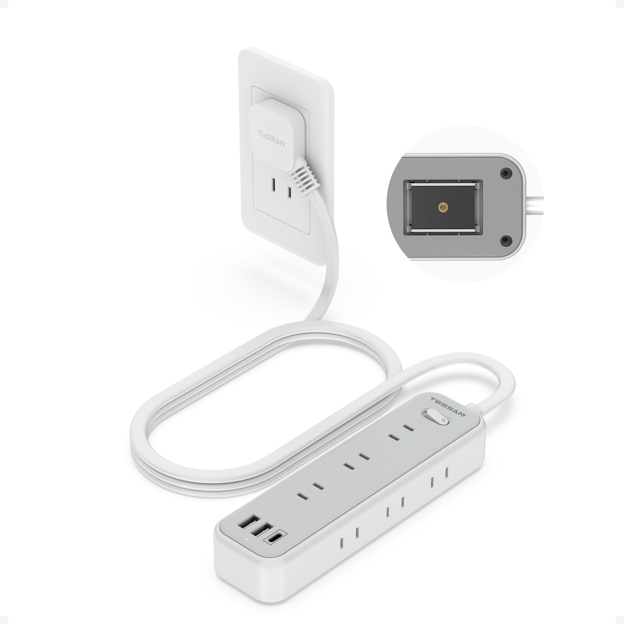 【薄型プラグ付きのusb コンセント】このたこあしコンセントは、薄型プラグを採用しているため、狭いスペースでも配線がしやすくなっています。プラグの根本には絶縁キャップを装備し、万一の発熱時にも安心です。コンパクトで使いやすい設計で、家庭やオフィスでの日常使いに最適です。