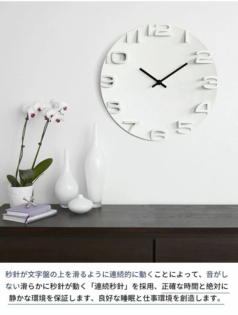 【騒音なし】かけ時計カチカチの音がしなくて、 音がほとんど聞こえません。静音タイプを採用し、良好な睡眠と仕事環境を創造します。