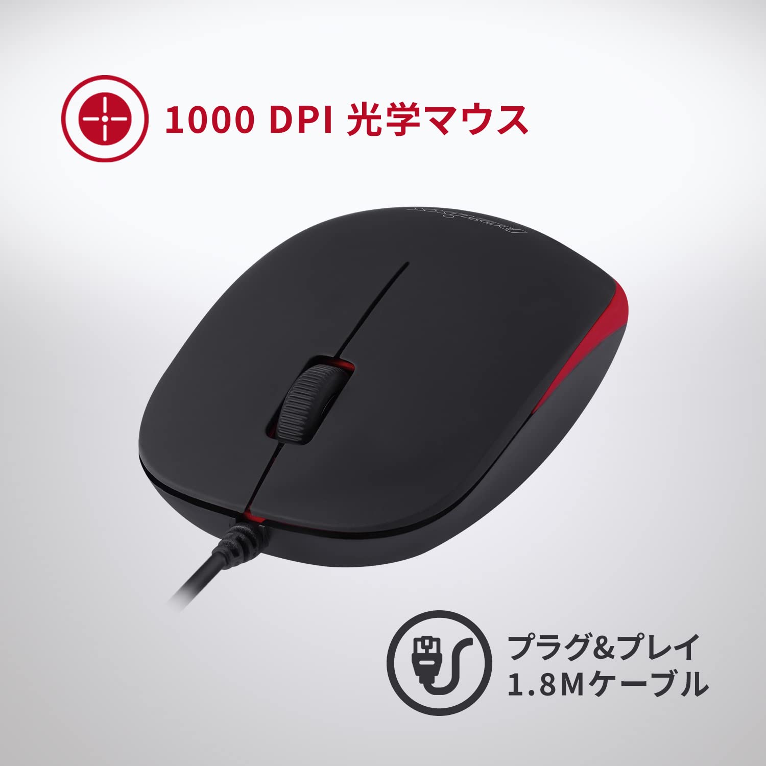 【光学式マウス】スクロールホイールを含む3ボタン式、正確な読み取りのできる解像度1000DPI。