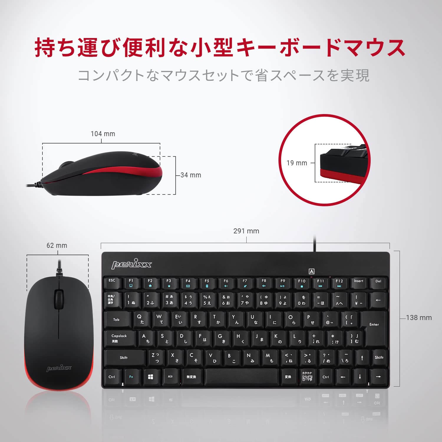 Perixx PERIDUO-212B ミニキーボード・マウスセット USB ブラック有線日本語配列