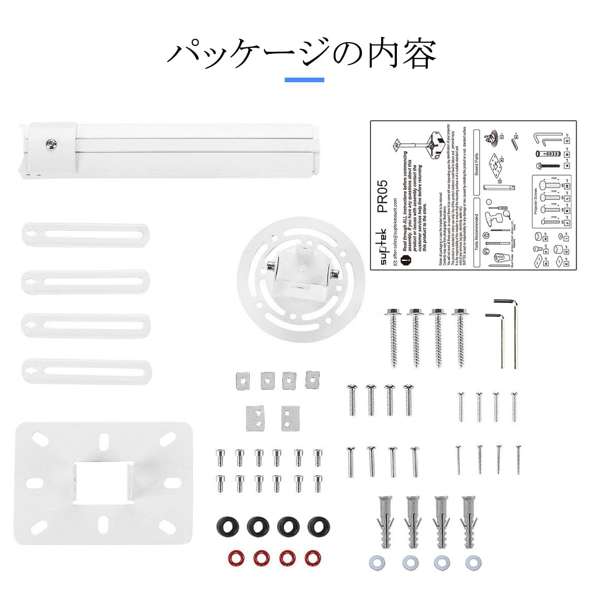【組立・取付簡単】天吊と壁掛け2つの取り付け方法があります。取り付け用の部品が付属しますので、日本語マニュアルに基づいてプロジェクターマウントを簡単に装着可能です。