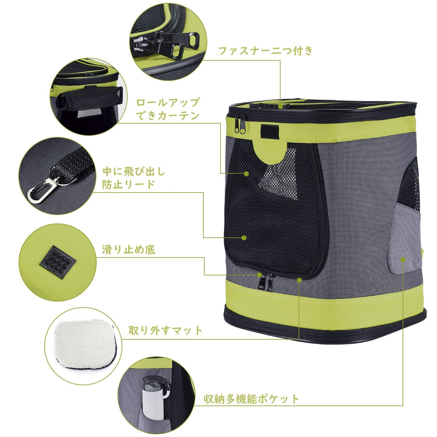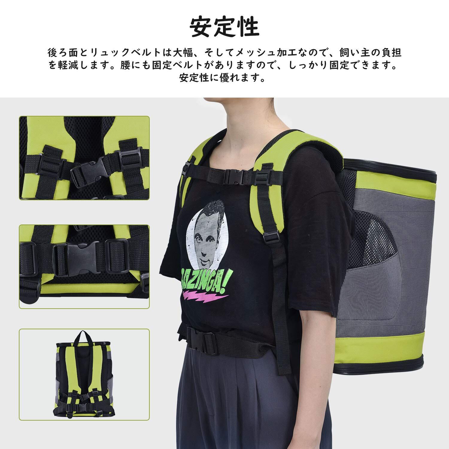 Pettom 猫 きゃりーバッグ リュック 犬 ペットキャリーリュック 猫 可愛い 通気 ペットリュック 崩れないタイプ (グリーン)