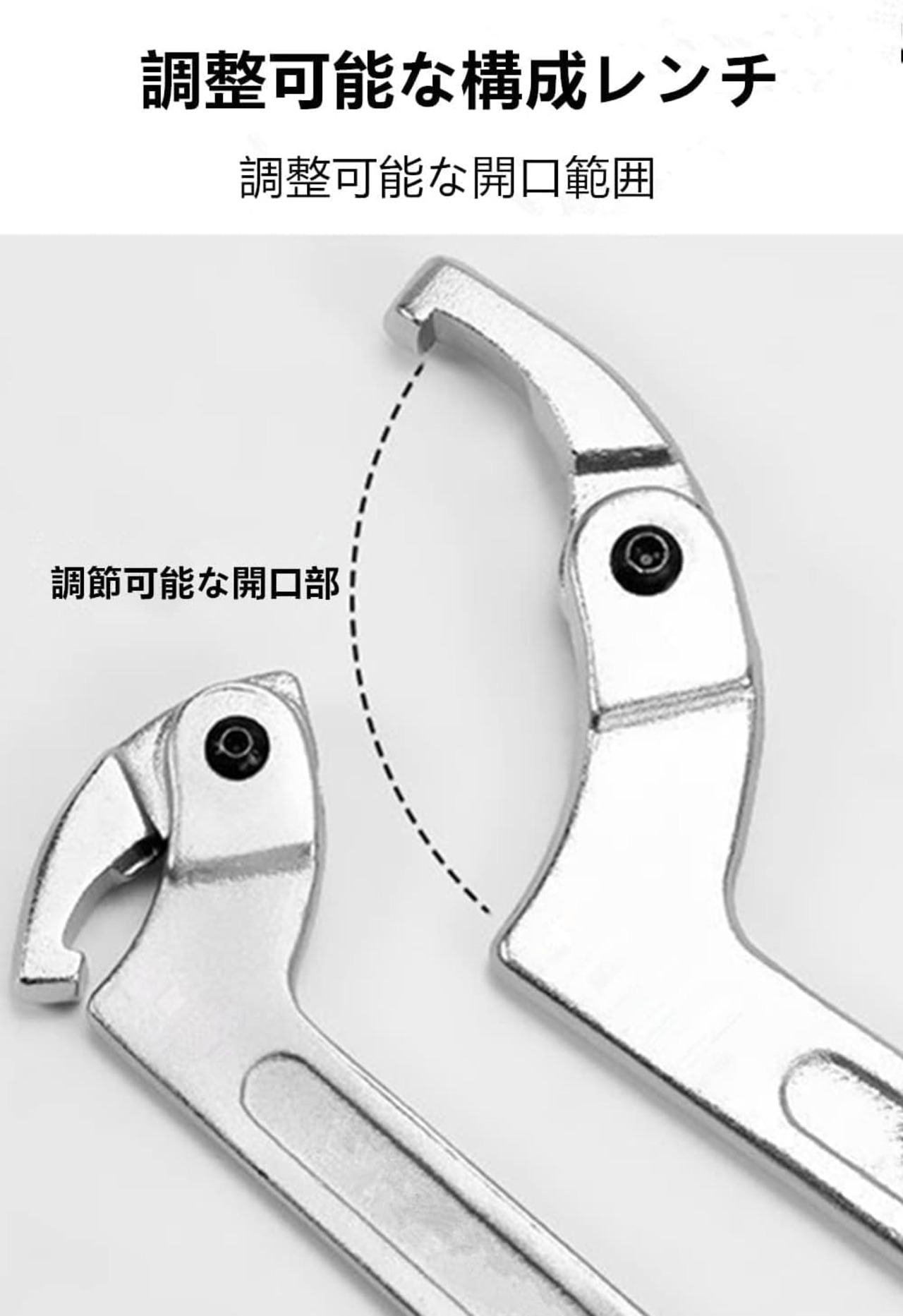 LIKENNY フックレンチ 車高調多機能調節可能 Cスパナ 19-51mm 丸頭 ロックナットレンチ 修理ツール 月形レンチ 引っ掛けスパナ(シルバー)