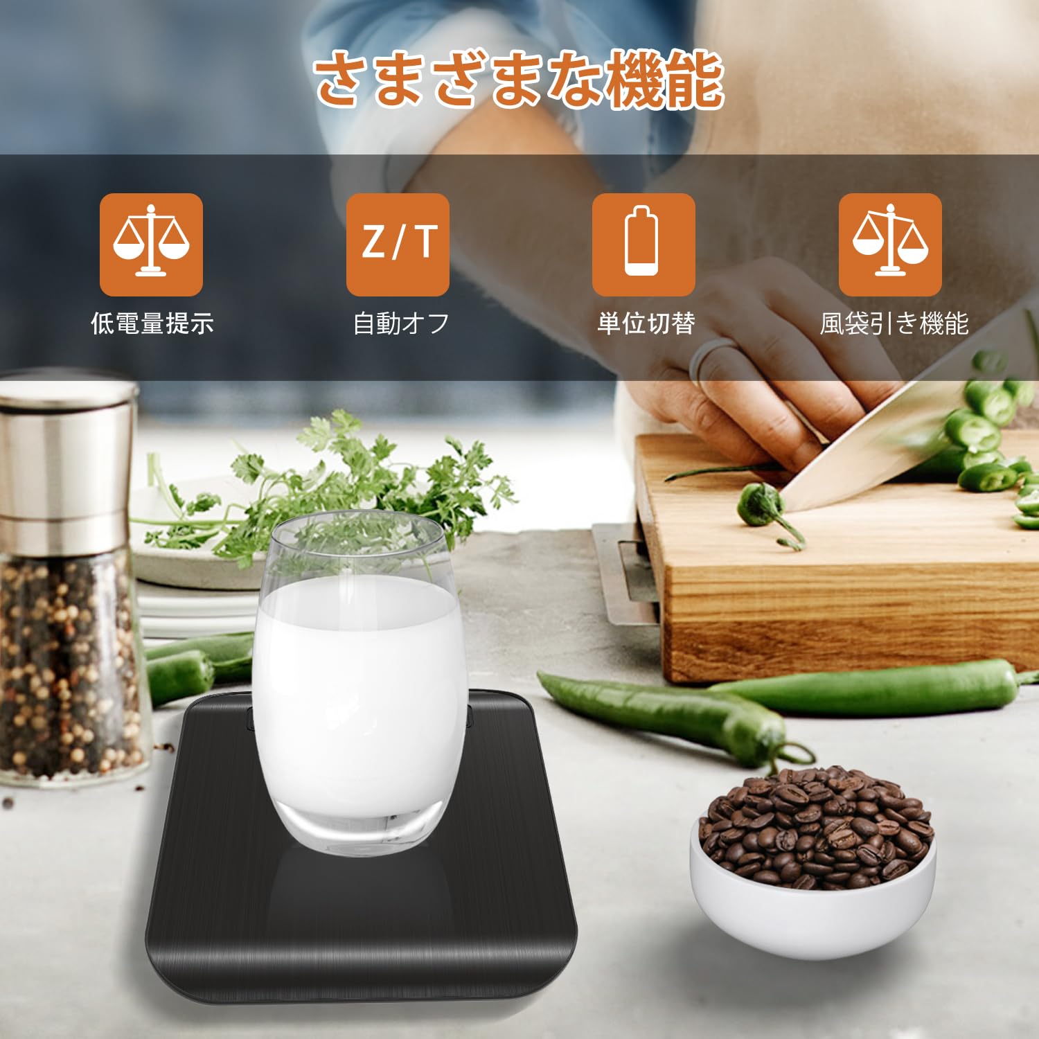 【高精度&広範囲計量】 このデジタルはかりは最小単位は1gからで測定範囲は最大5kgまで対応します。健康管理のための食事量の正確な計測に特に便利で、コーヒー、ペットの餌、郵便物など様々なアイテムの重量を測定でき、幅広い用途に利用できる計量器です。