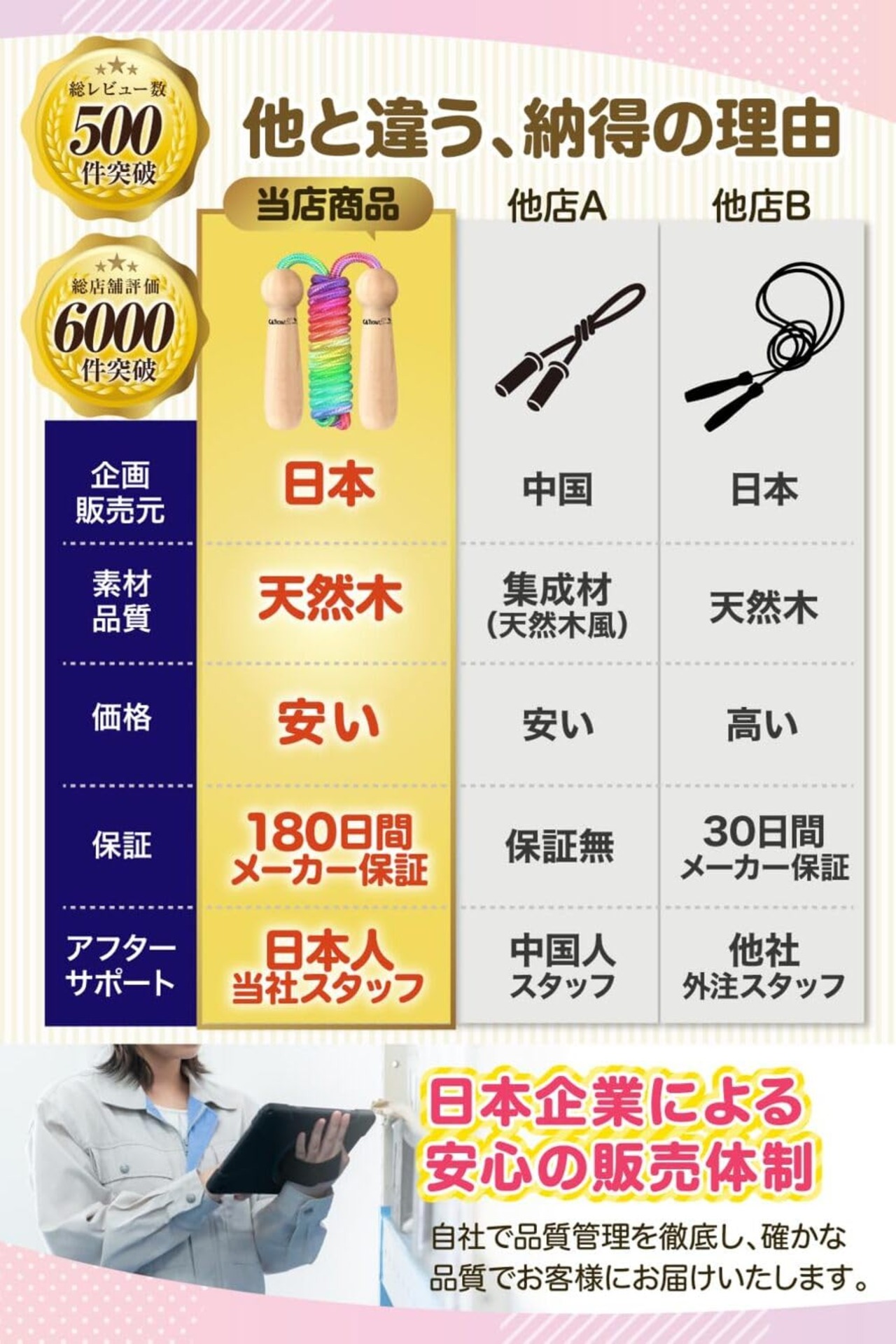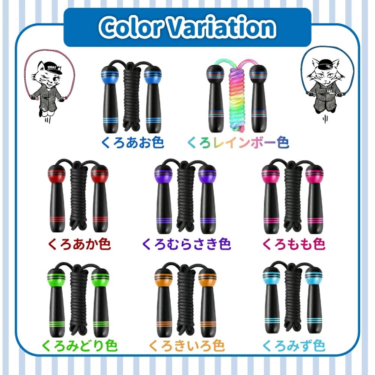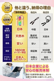 ??【強化縄ロープ採用|切れにくく、痛くないから安心】 一般的なロープよりも一回り太い【直径8mmの強化縄ロープ】を採用。 高い耐久性で切れにくく、長く使える安心設計です。 さらに、柔軟性のある縄素材を使用しているため、足に当たっても痛みを感じにくく、 お子様や初心者の方でも“怖くない縄跳び”が楽しめます。 ──耐久性とやさしさを両立した、安心の一本。